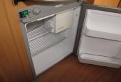 area with 4 gas ring hob, grill, small fridge with box freezer compartment,