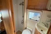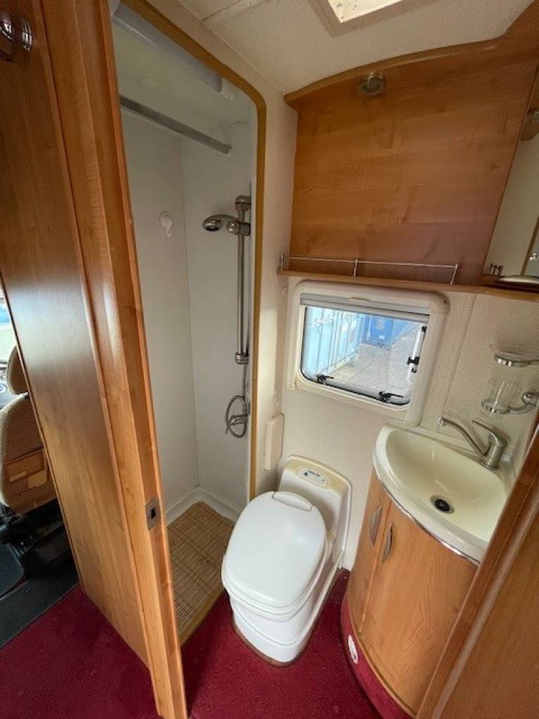 has a separate shower, wash hand basin, cassette toilet and a vanity mirror.