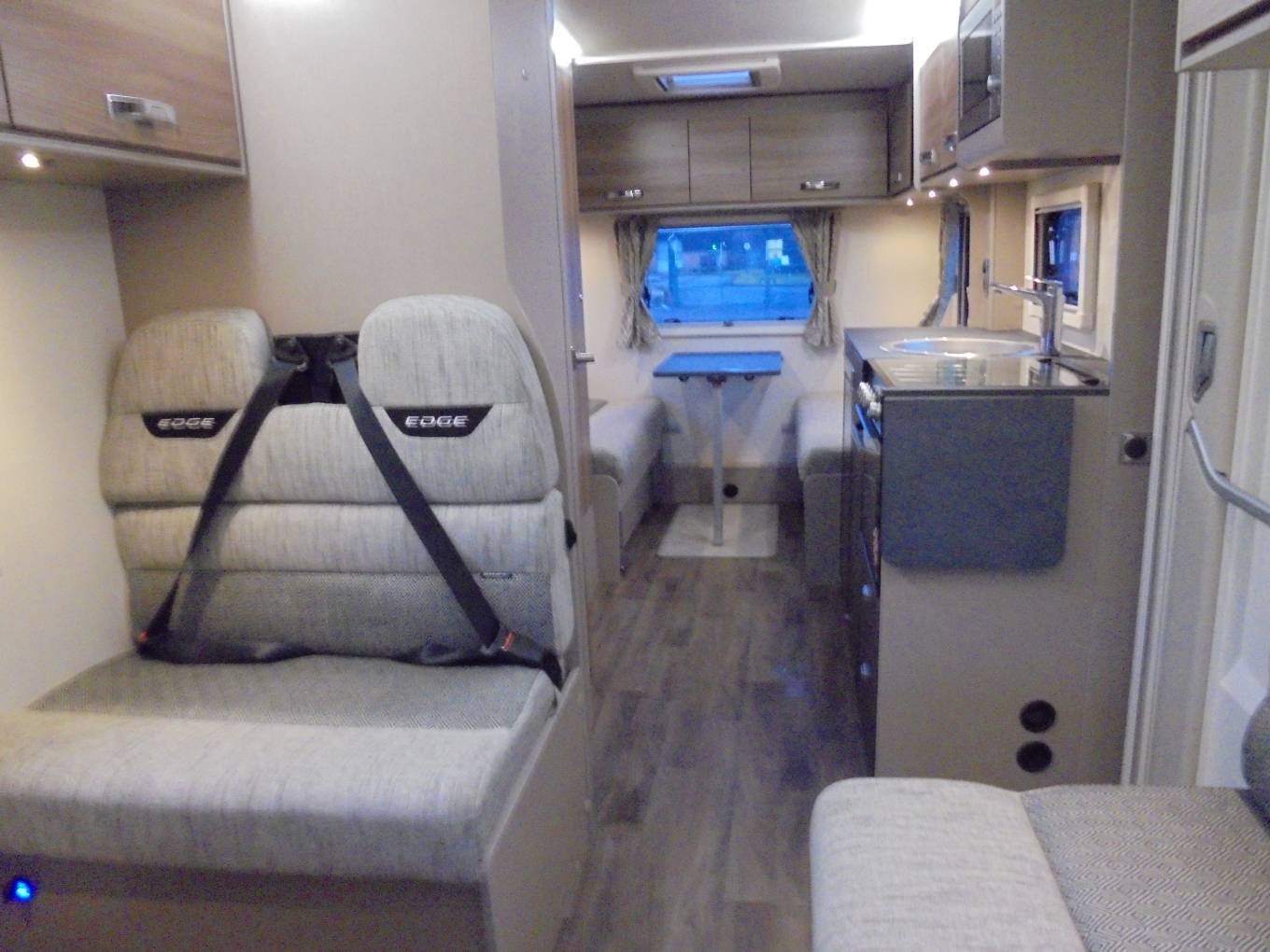 Motorhome Depot Glasgow are delighted to bring to the market this brand new Swift Edge 486 six berth motorhome, a perfect family vehicle for up to 6 people or for couples who like plenty of space. There are two large lounges – one at the front and one at the rear both can easily be made up at night into a large double bed – ideal if you want space during the day or they can be left made up to use either one as a lounge and a relaxing area instead.