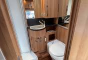 Opposite the kitchen is the shower room with thetford fixed toilet, wash basin