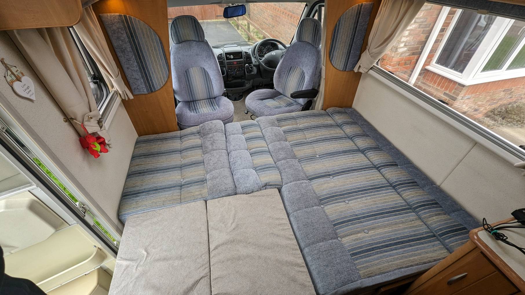 On the exterior, revel in the convenience of an outside tyre pressure checker and outside gas access. This motorhome also comes with a gas bottle, 4 in date Michelin agilest tyres, replaced engine and leisure battery, engine radiator, fuel tank, electric step, habitation water pump, toilet flush pump, hot water boiler element, power unit refurbishment by Sargent, this van has its needs catered for. The essential cambelt replacement was done at 41,972 miles on 25th march 2021. The motorhome boasts a Full-Service History and its MOT remains valid until October 2024.
