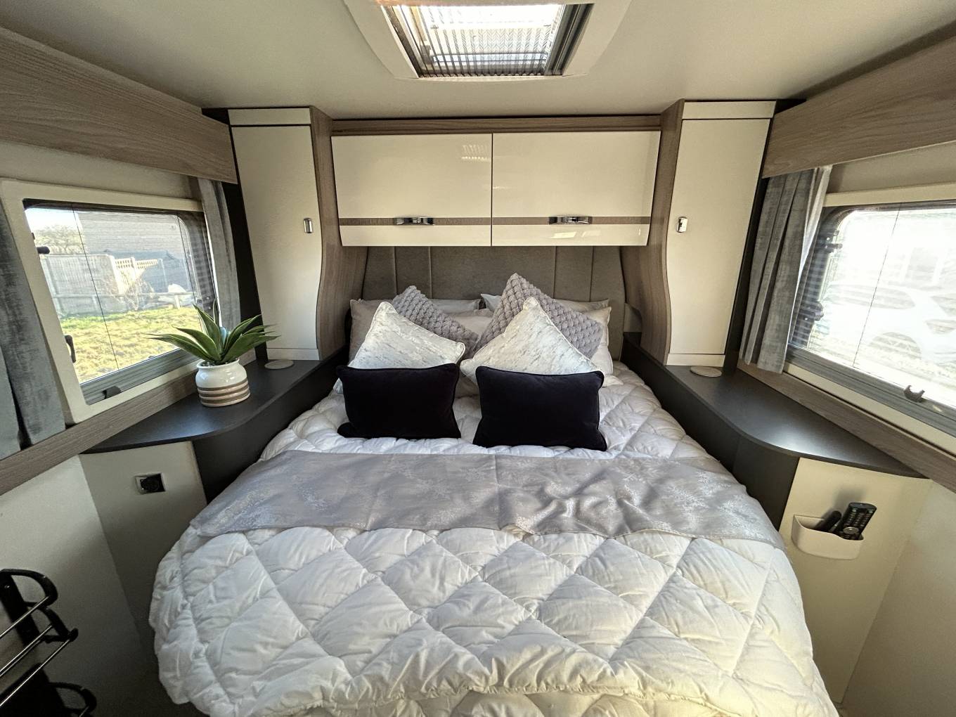 Undoubtedly one of the standout features is the superb bedroom featuring the ever desirable island bed layout. Next to the bed are 2 wardrobes with hanging rails and there is additional storage space in the overhead lockers.