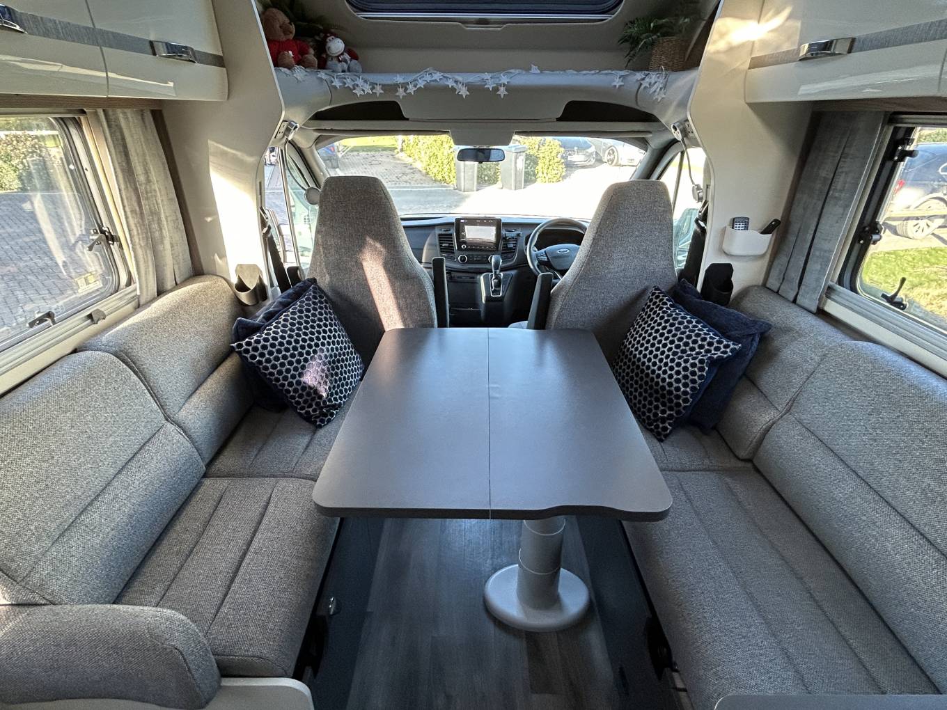 Based on the world renowned Ford Transit chassis with a Euro 6D 155 bhp engine, this motorhome has automatic transmission, cruise control with speed limiter, cab air conditioning, full cab privacy blinds, driver and passenger airbags, electric windows and mirrors and a superb multi-media system with a 9 inch screen including Apple Carplay / Android Auto a reversing camera, DAB radio, USB and Bluetooth.