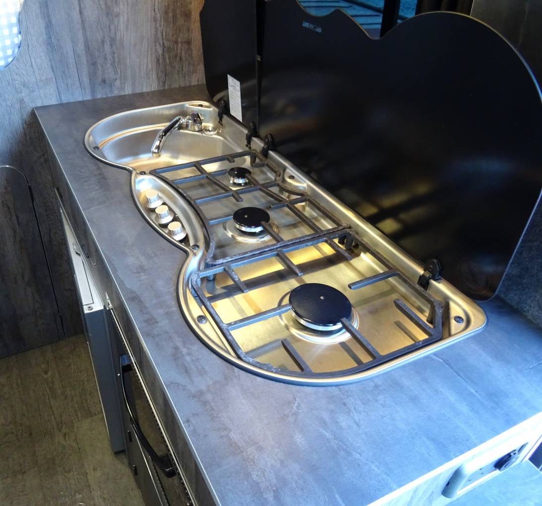 The camper is 2-berth and has 3-seatbelts ,It has a front seating area which is made up of the two front swivel captains seats and a double travel seat around a removable table, its the perfect place to dine and relax in.