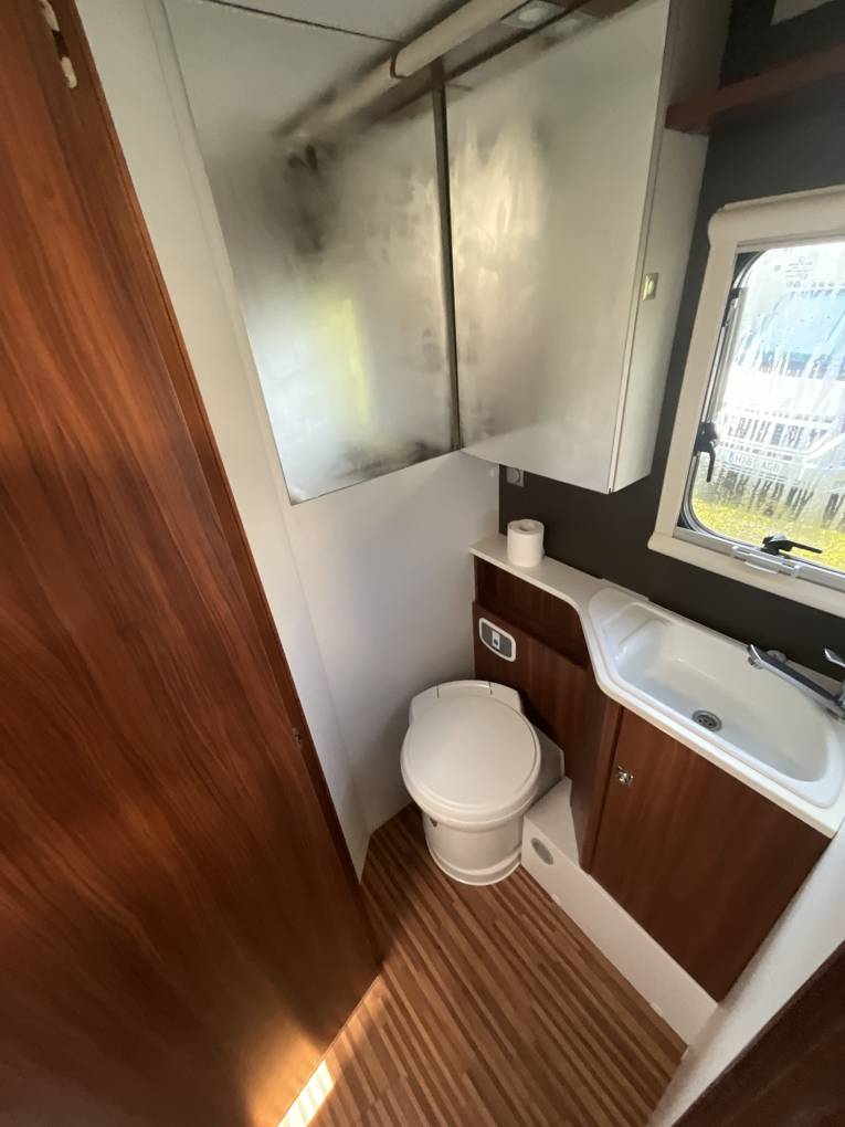 * Washroom facilities include toilet, vanity unit and hand wash basin in one passenger side of the motorhome and the separate shower facilities positioned on the opposite side of the motorhome.