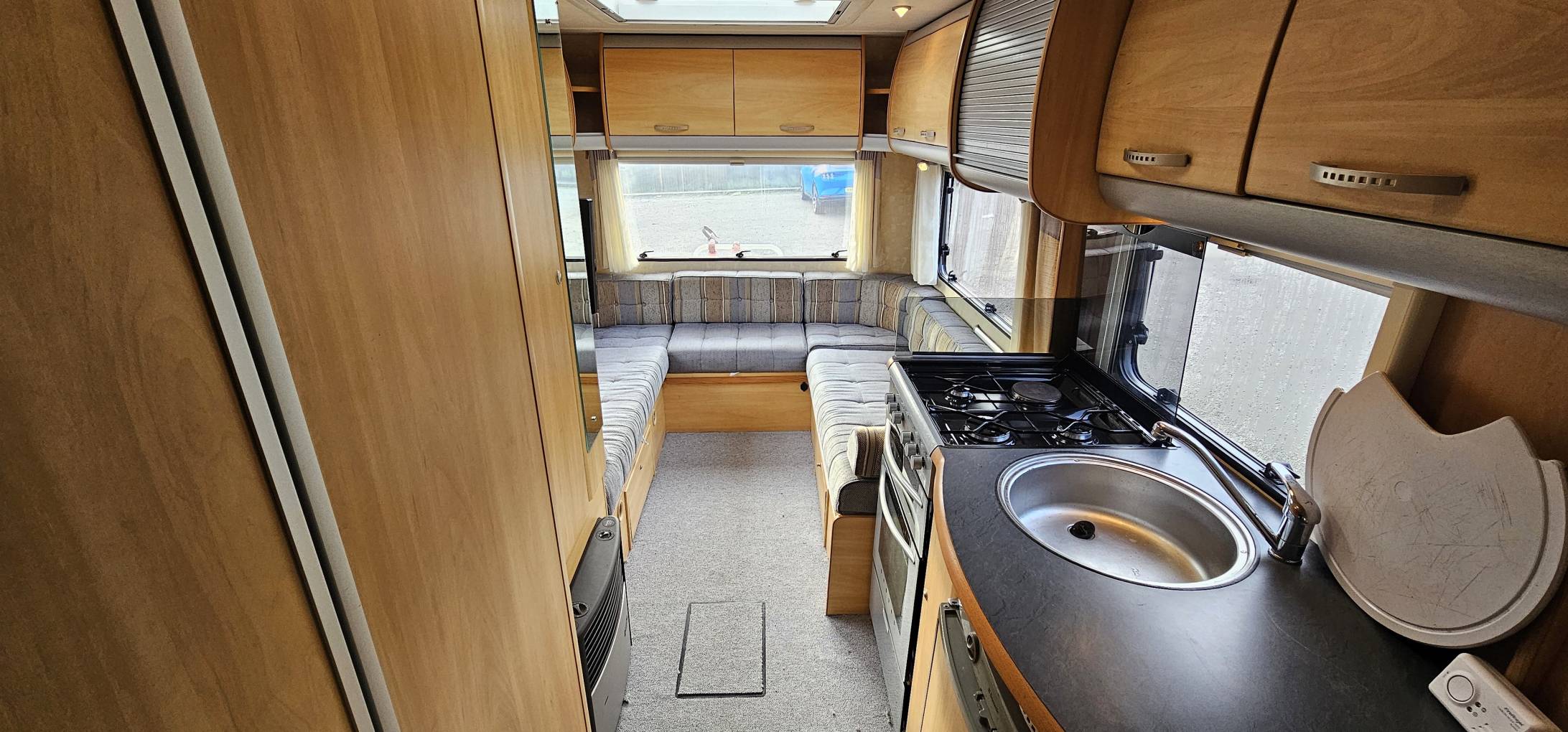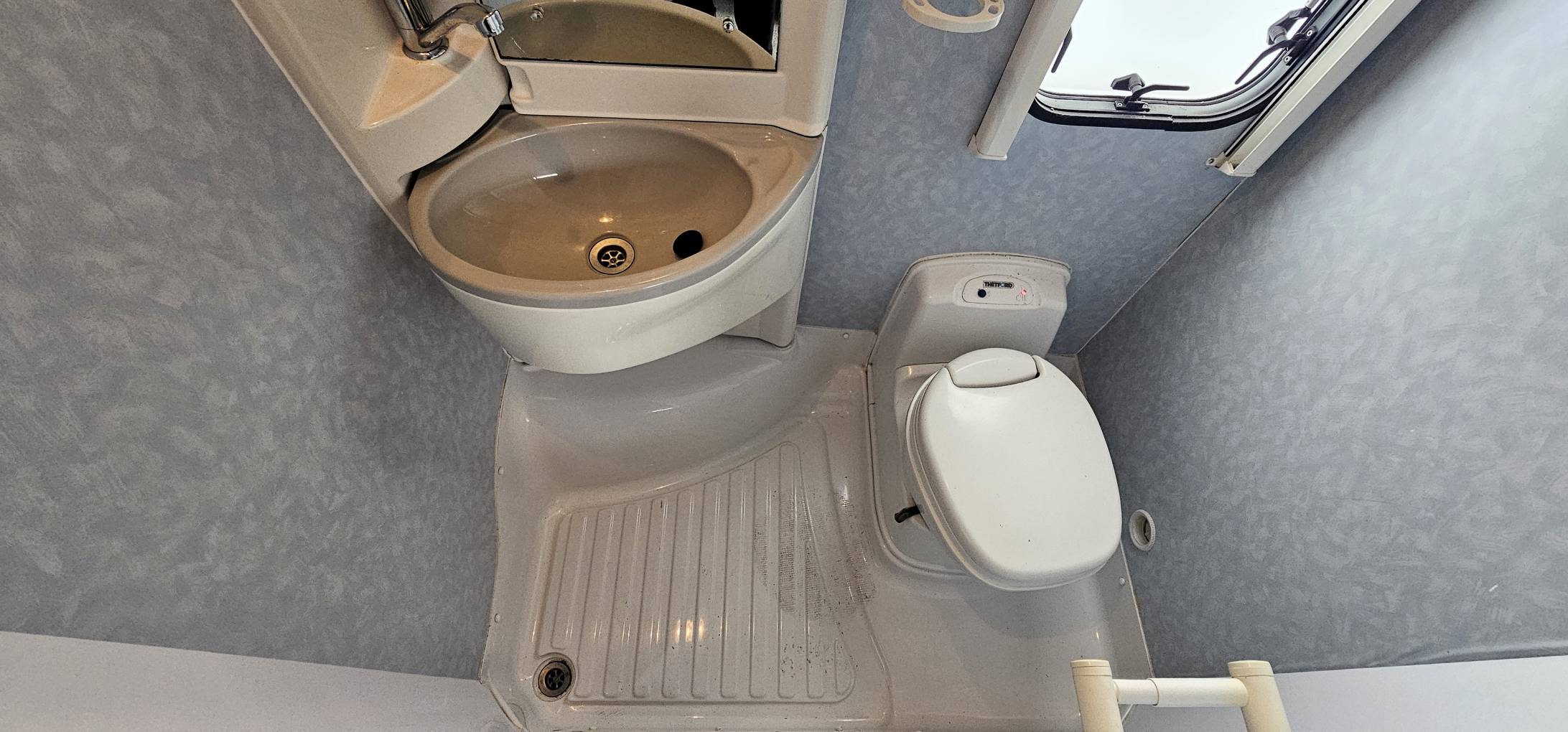 seamlessly on both gas and electricity. The washroom boasts a Thetford electric