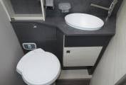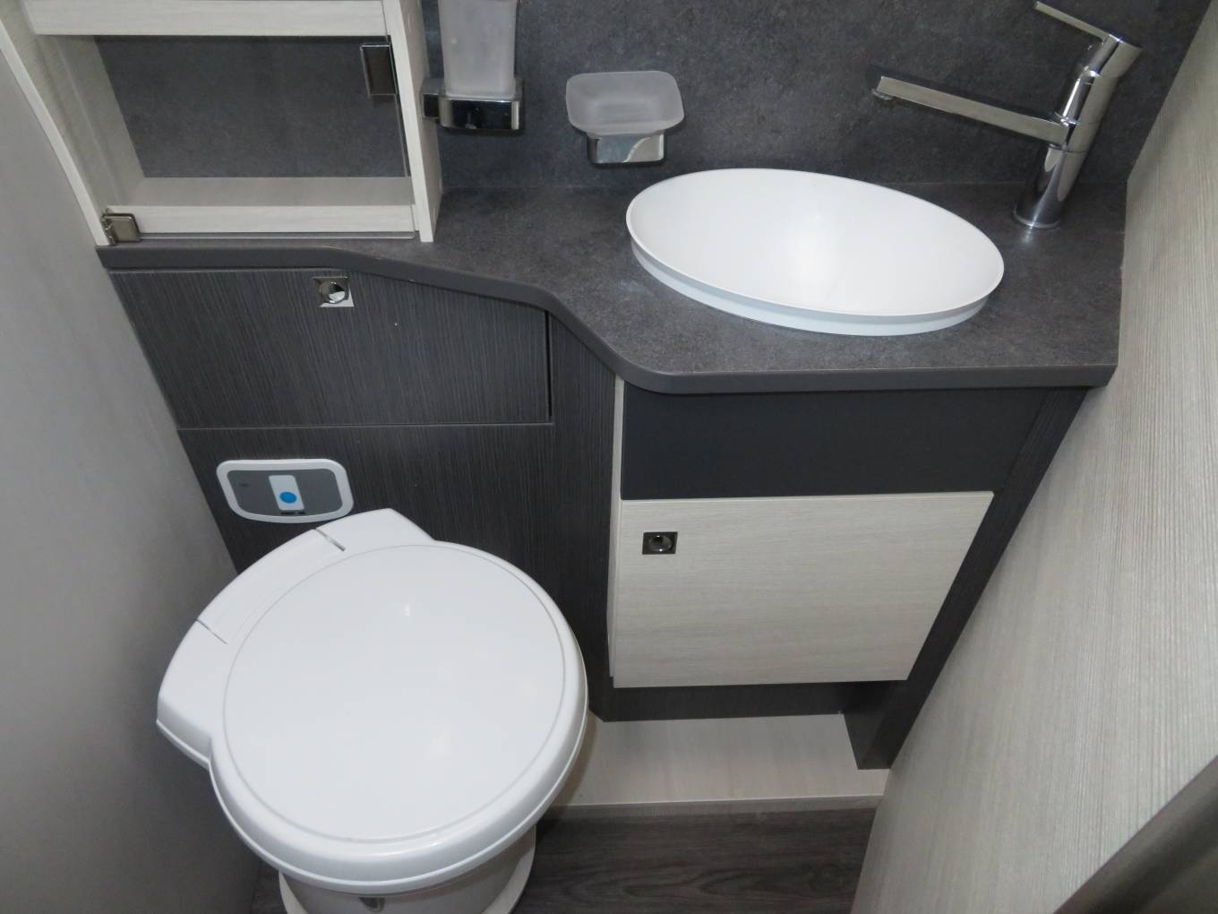 This Chausson is exceptionally comfortable to sleep in with a large Island Bed (190cm x 155cm) at the rear. There is also an electric drop-down bed in the centre of the motorhome and a further single can be made up from the lounge sofas. The washroom is split into two separate areas. On one side you have a large separate shower with screen doors and on the other side is a Thetford cassette toilet, a wash basin with a mixer tap, mirror and a bathroom storage cabinet. Heating is provided via the diesel Truma I-net heating system.