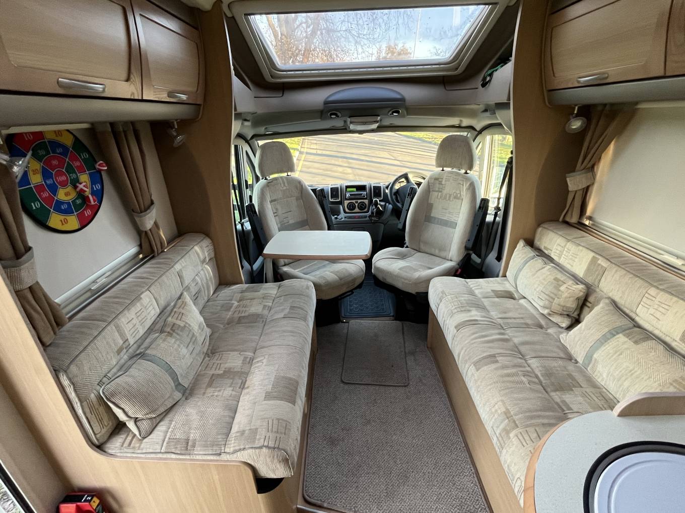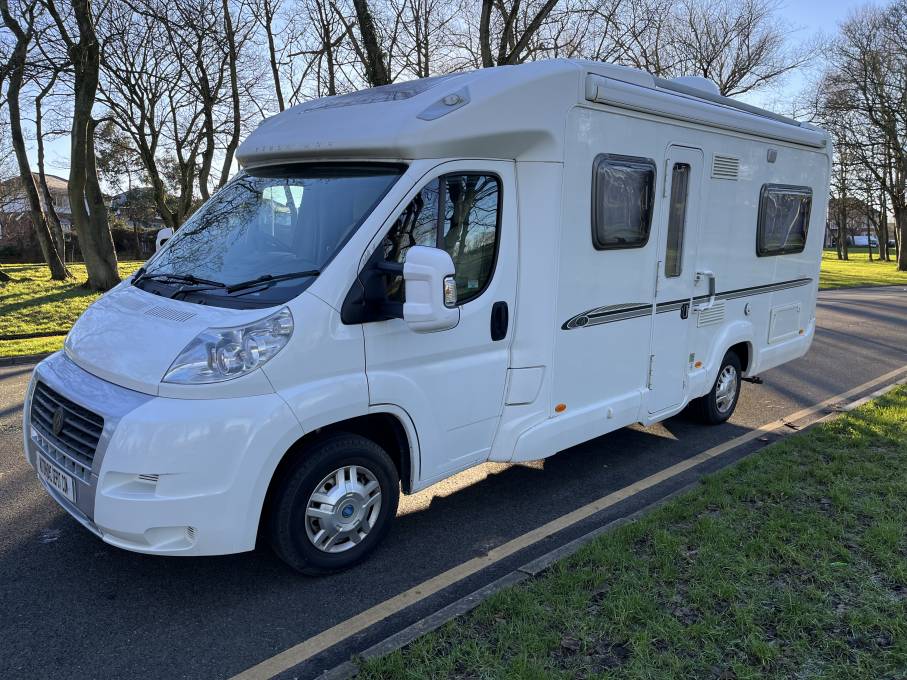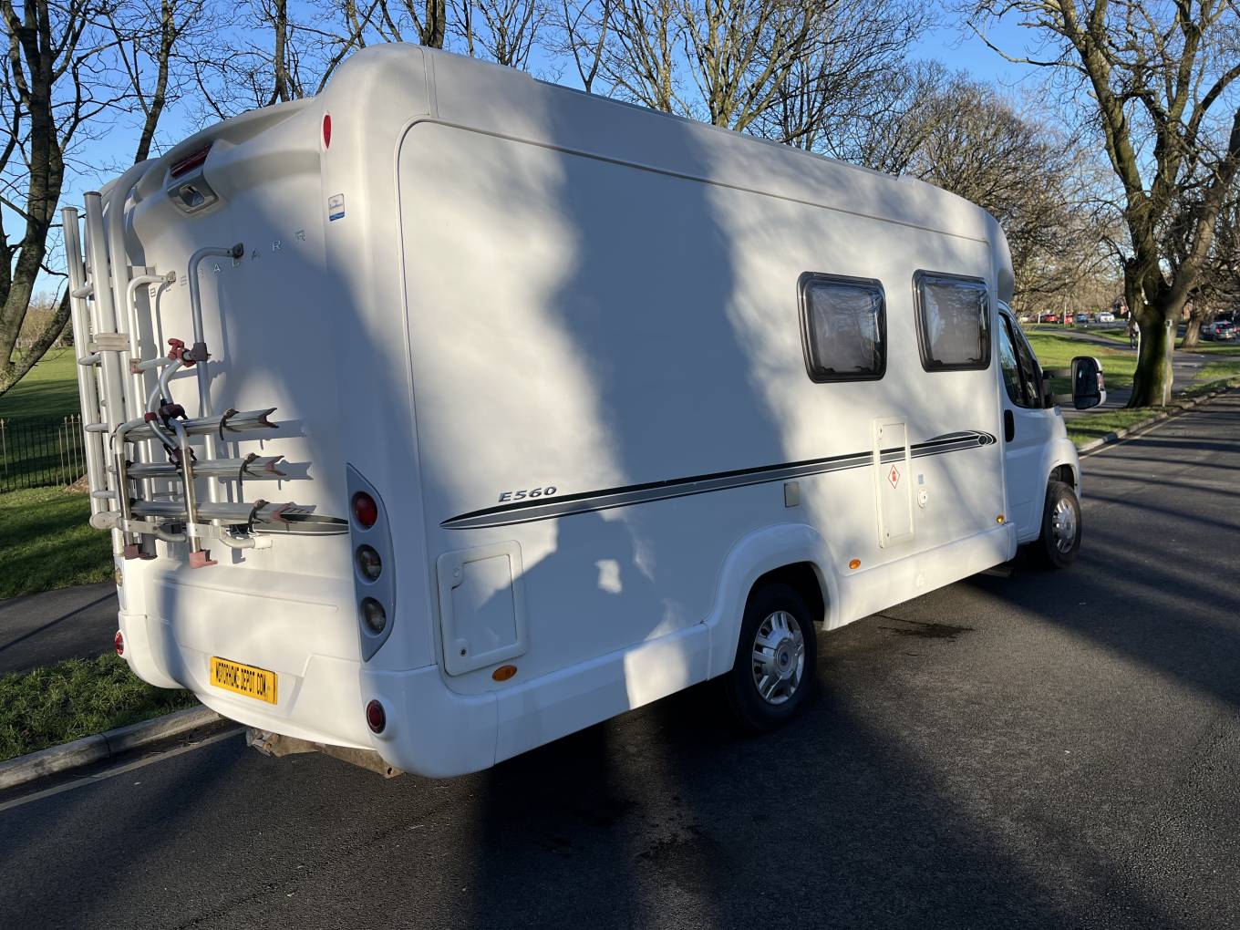 Bessacarr E560, 4 Berth Motorhome with Fixed Rear Bed. This van is built on the Fiat Ducato 2.3, 130bhp, it has a gross weight of 3,500kg, which means it can be driven on a standard car licence and is just over 7 metres long. it has a spacious layout with a Fixed Bed to the rear, next this is a good sized Bathroom with Separate Shower Compartment and in the centre is a well equipped kitchen including a microwave. At the front is the lounge area with bench seats and the 2 front seats swivel to provide extra seating. It comes with Rear Camera, Blown Air Heating, Gas Low Refil System, TV, Satellite System, Tow Bar, Bike Rack and Solar Panel. It also comes with an Air Beam Drive Away Awning, Mains Lead and is ready to go. An excellent example, viewing by appointment in Blackpool, call for more photos, videos and information.