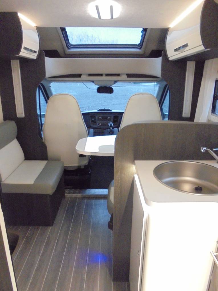 natural light with the 2 cab seats easily swivelling around for socialising or