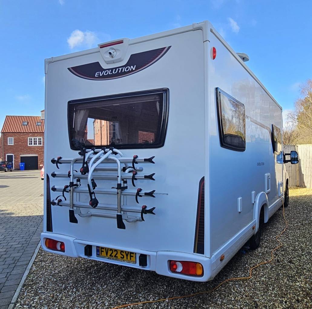 The extras added to this model are: External BBQ Point, External Shower point, Tracker, Cruise control/speed limiter, Solar panel, Diamondbrite treated, Fly screen to door, Gas bottle, Bike rack and Alloy wheels. The owner has also agreed to include all the pots, pans and items brought for the motorhome, all of which can be seen in the images.