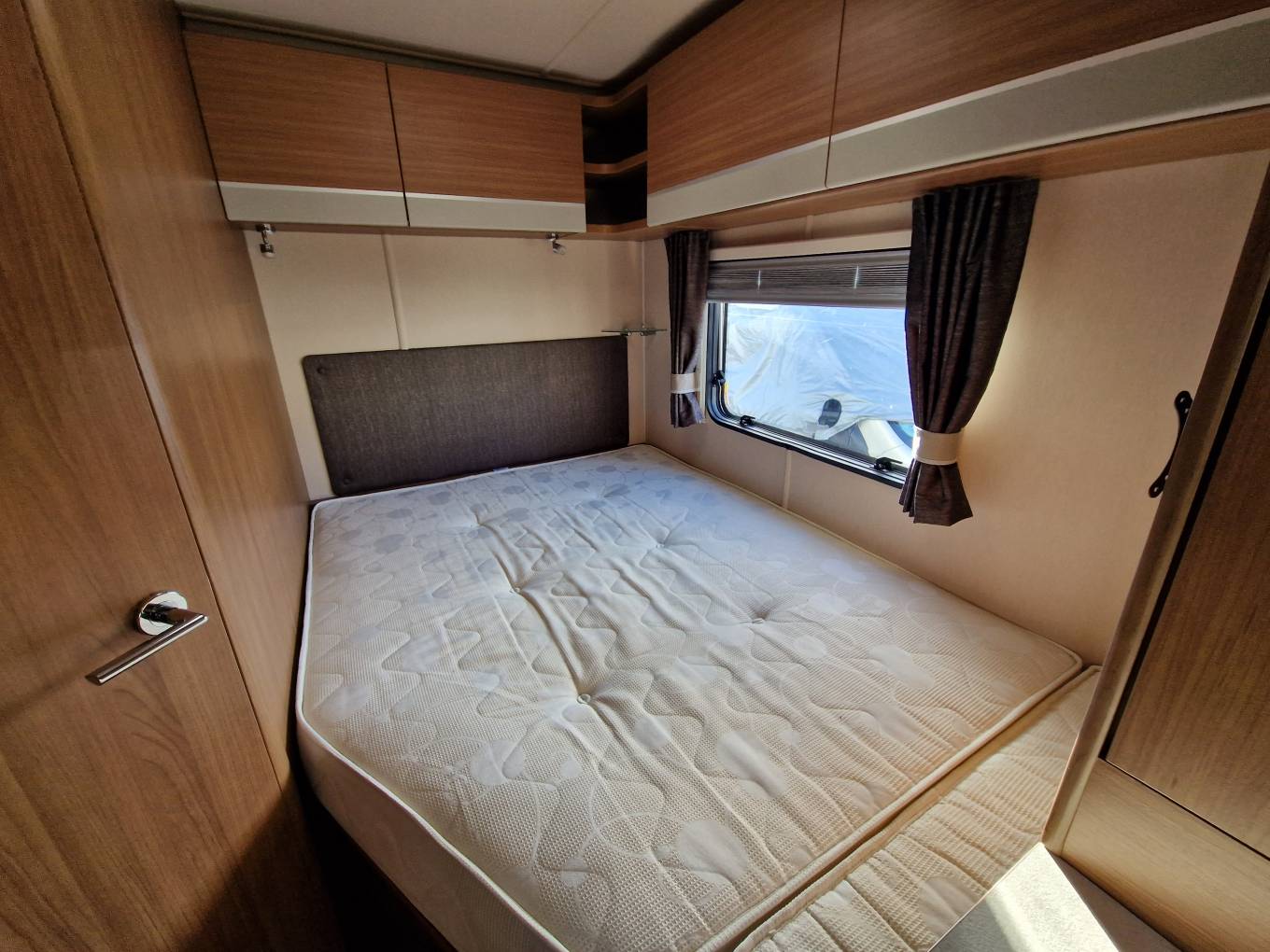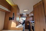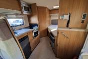 To the rear you will find the fixed French bed with storage beneath which can also be accessed from the external locker.