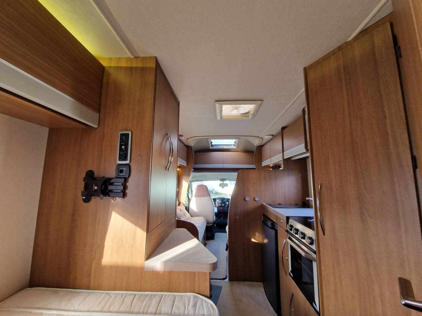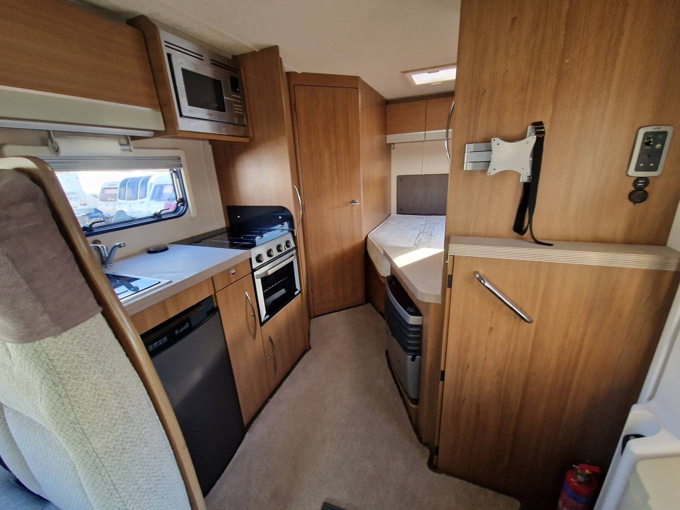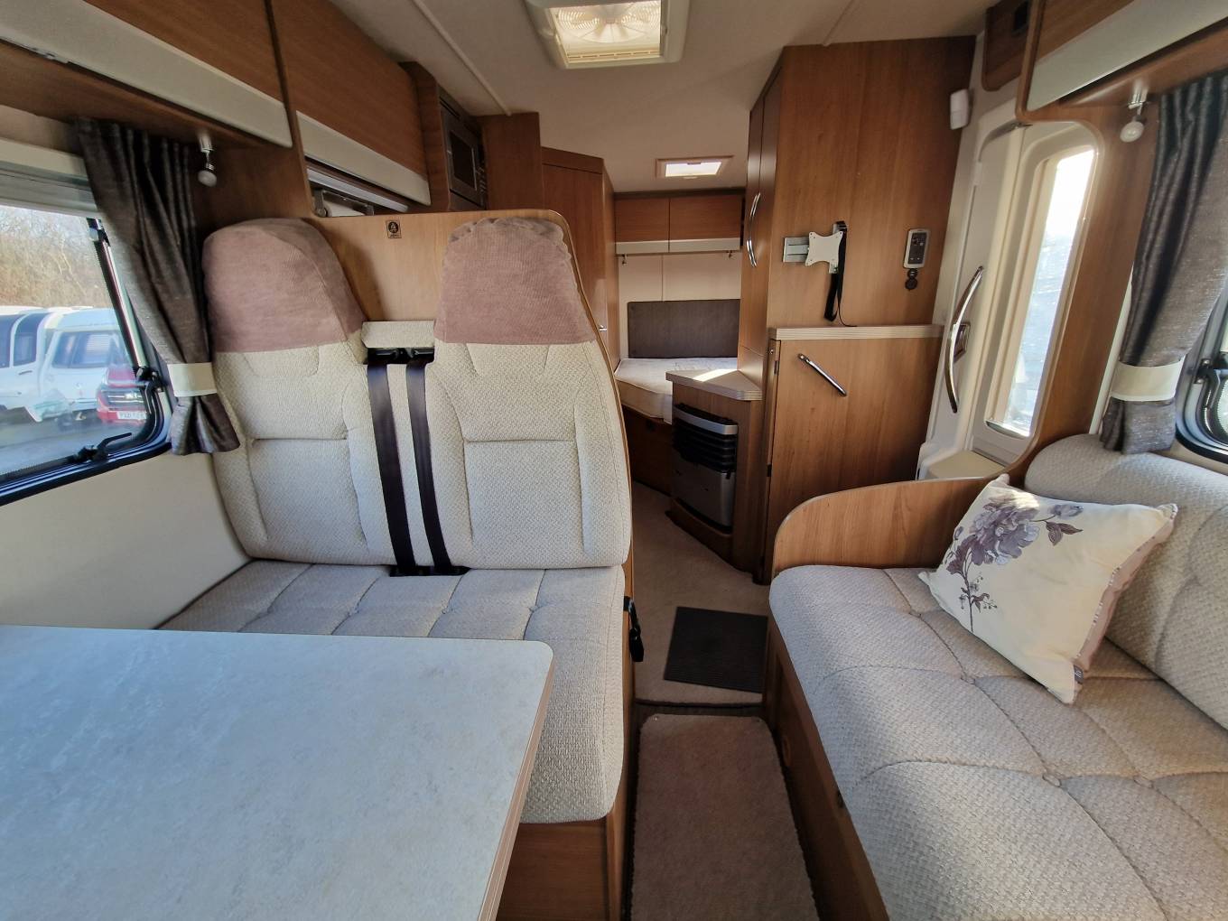 The vehicle also comes with TV aerial, microwave, carpets, Truma blow air heating, hot water, 2 sets of keys, wind out awning, electric step, 240v hook-up cable and one gas bottle.