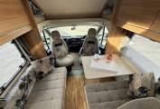 At the front of the motorhome you have a beautiful dinette which can fit 5 adults comfortably. The two front seats will swivel to create more seats for you, and the dinette will also convert into the second bed. The dinette has a table which can be left up and removed for more space, and the two front facing seats do come with seatbelts so this is a four seat belt motorhome.