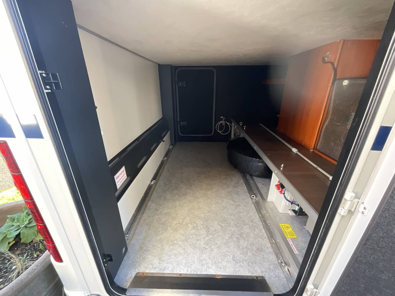 Outside: External gas point; Fiamma 5m awning; 1 x Solar panel 1 x 150W; Global Telemetrics tracker; Tow Bar and Electrics; Reversing camera; Auto self leveling system; Electric step; 16” alloy wheels; 140 litre fresh and waste water tanks; SOG toilet ventilation via the roof; Garage door on left hand side 1010 x 565 mm; Outside shower in garage. Oyster 85 cm satellite system.