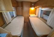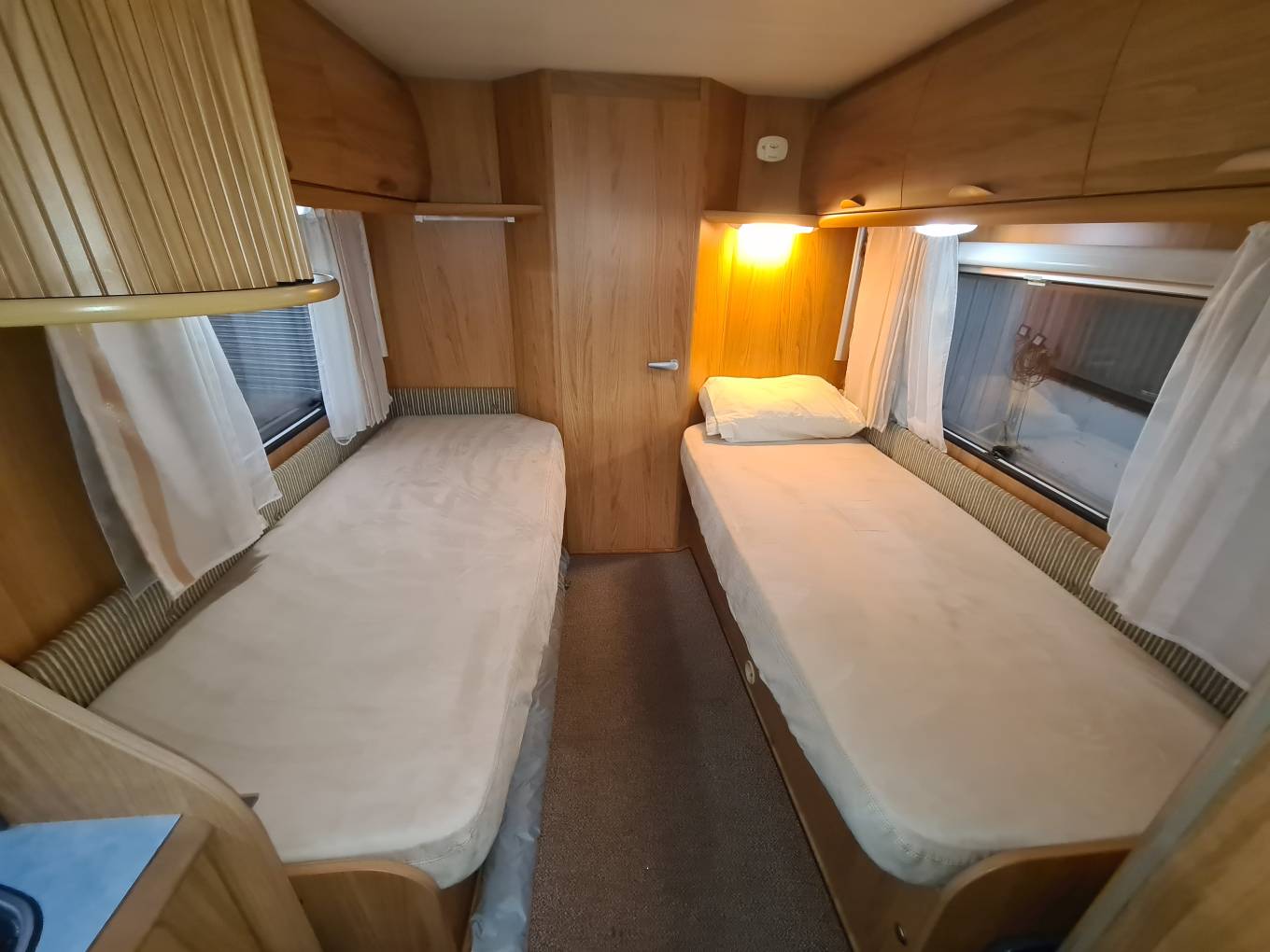 Step out of the washroom straight into the bedroom which features the very popular “fixed single” beds layout with plenty of storage below.