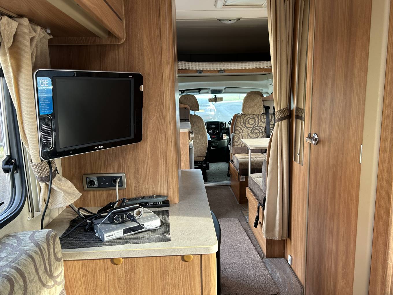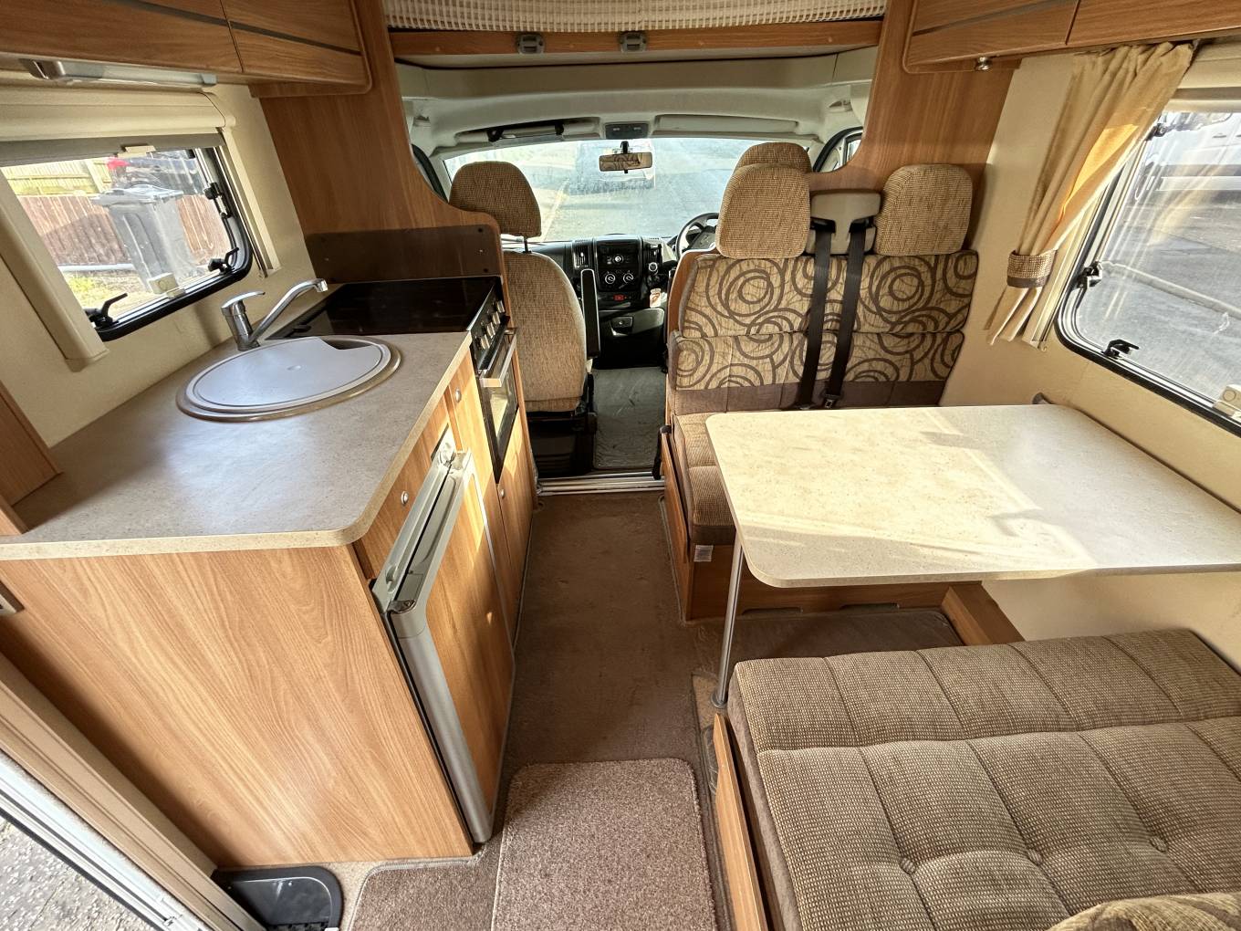 This 2012 model has only covered 23,143 miles. It is based on the class-leading Fiat Ducato chassis and has a powerful and economical 2.3 litre engine. Externally the motorhome boasts a number of nice features including a satellite dome so you can keep up with all the latest shows on your travels, a tow bar with electrics, a large rear storage box, a wind out awning and an electric entrance step.