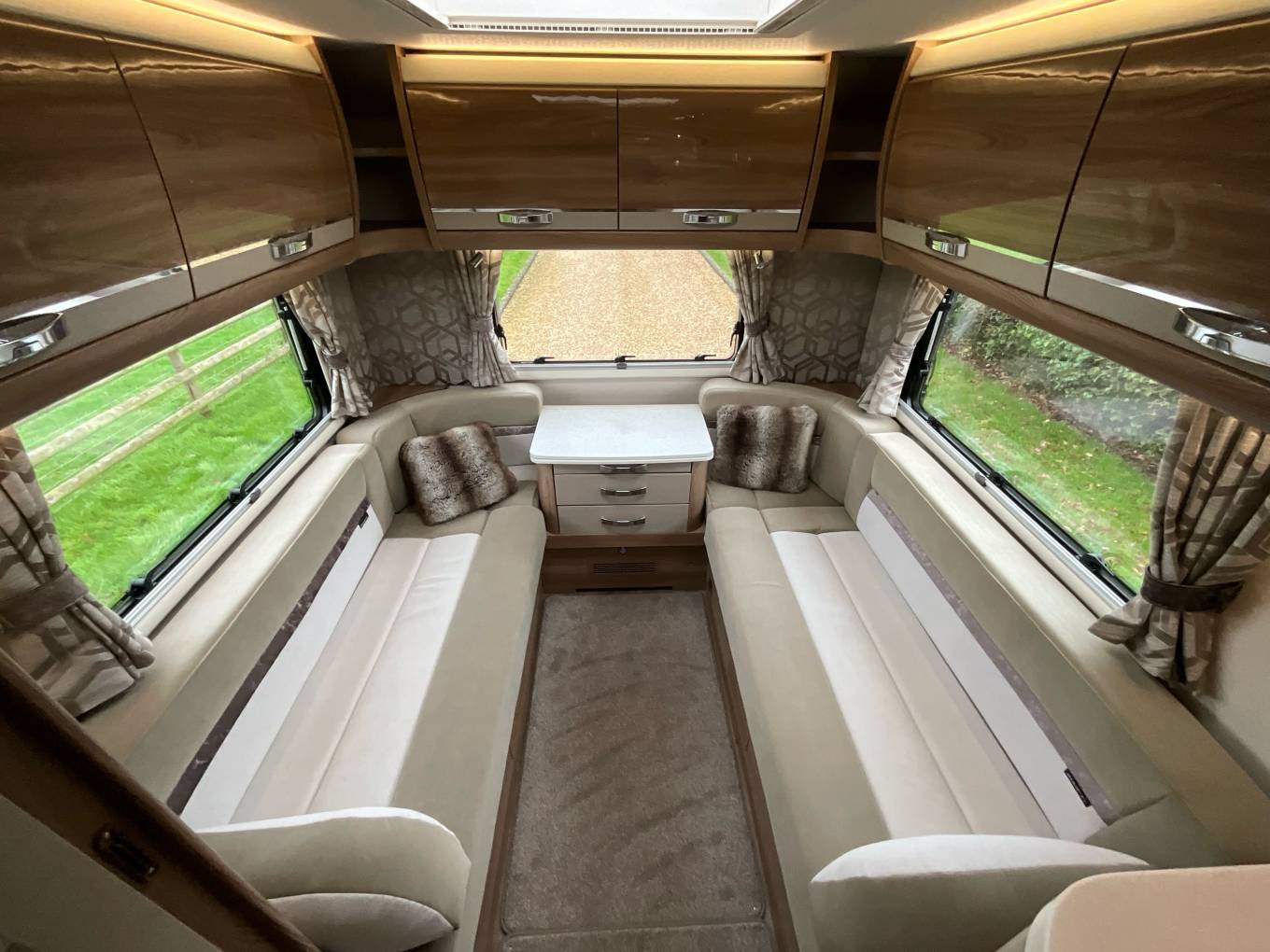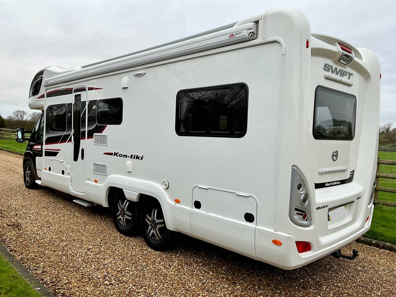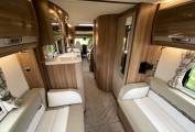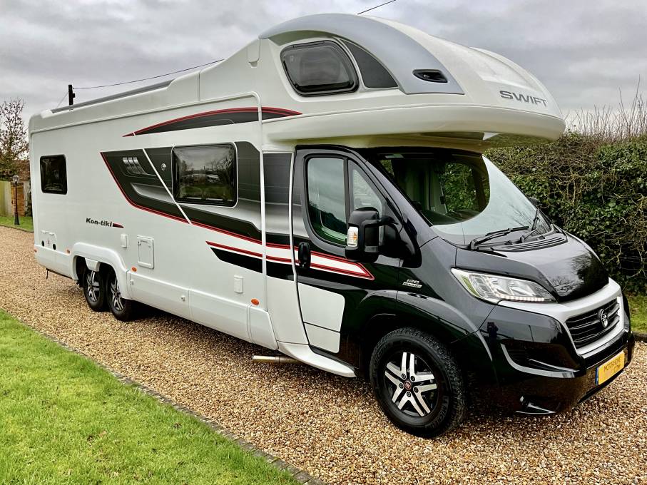 Here we have a beautiful example of the Swift Kontiki 649 Black edition. The Kontiki is the pinnacle of the Swift range. The 649, offers a six berth variant with a rear lounge, front dinette with four seat belts and a large overhead bed.