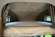 At the front of the vehicle is a spacious lounge area with a dinette one side and a bench seat opposite including additional seatbelts which can be converted into another double bed. Over the cab is a huge double bed that could easily sleep two adults.