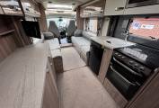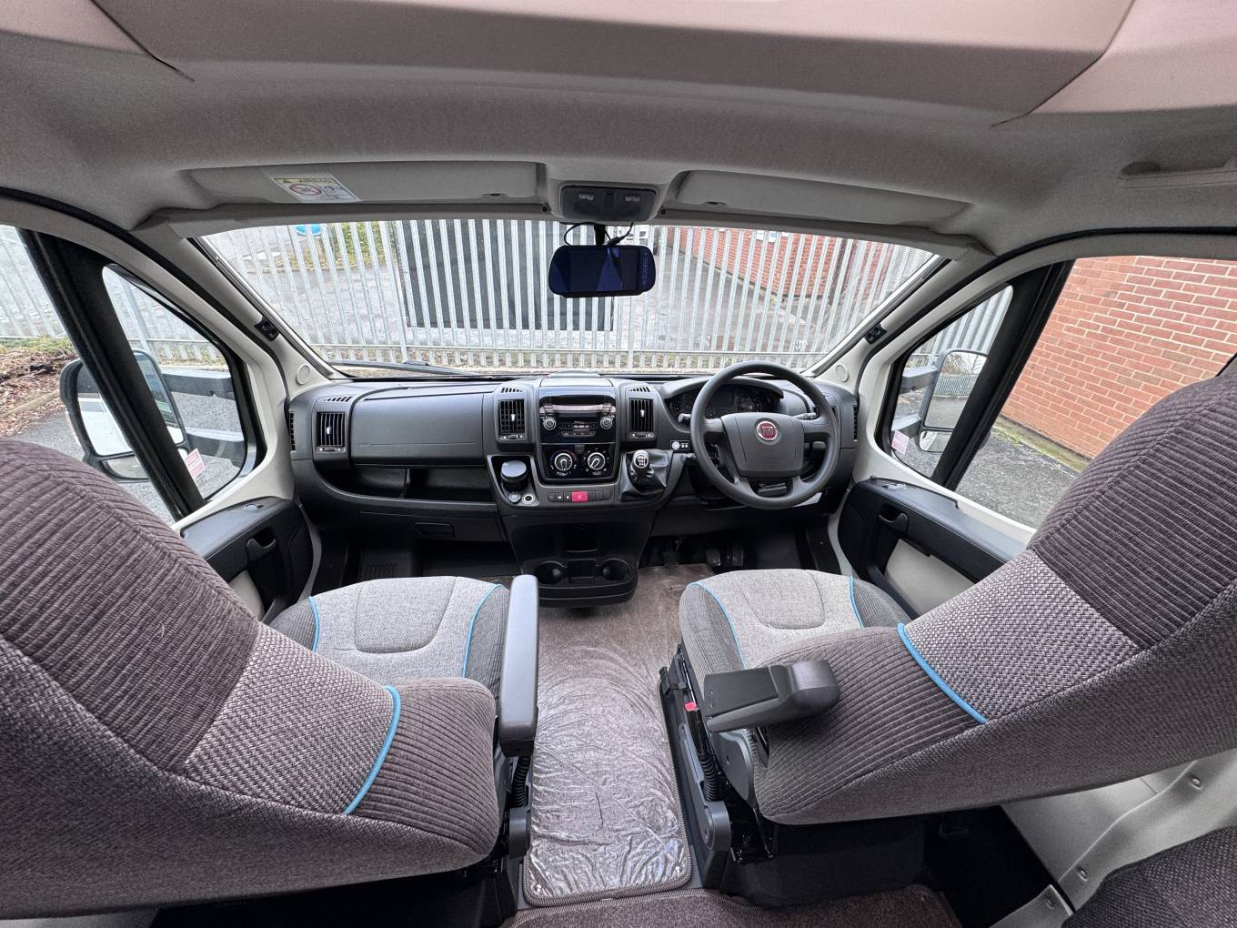 The vehicle is based on the excellent Fiat Ducato chassis with 150bhp and a 6 speed manual gearbox. It is 7.36m long and weighs 3500kg meaning it can be driven on a standard car license. Cruise control and air con in the cab are standard items as are electric windows and height adjustable seats so you can expect a comfortable drive whether you are travelling locally or heading to the southern parts of Europe on an extended trip.