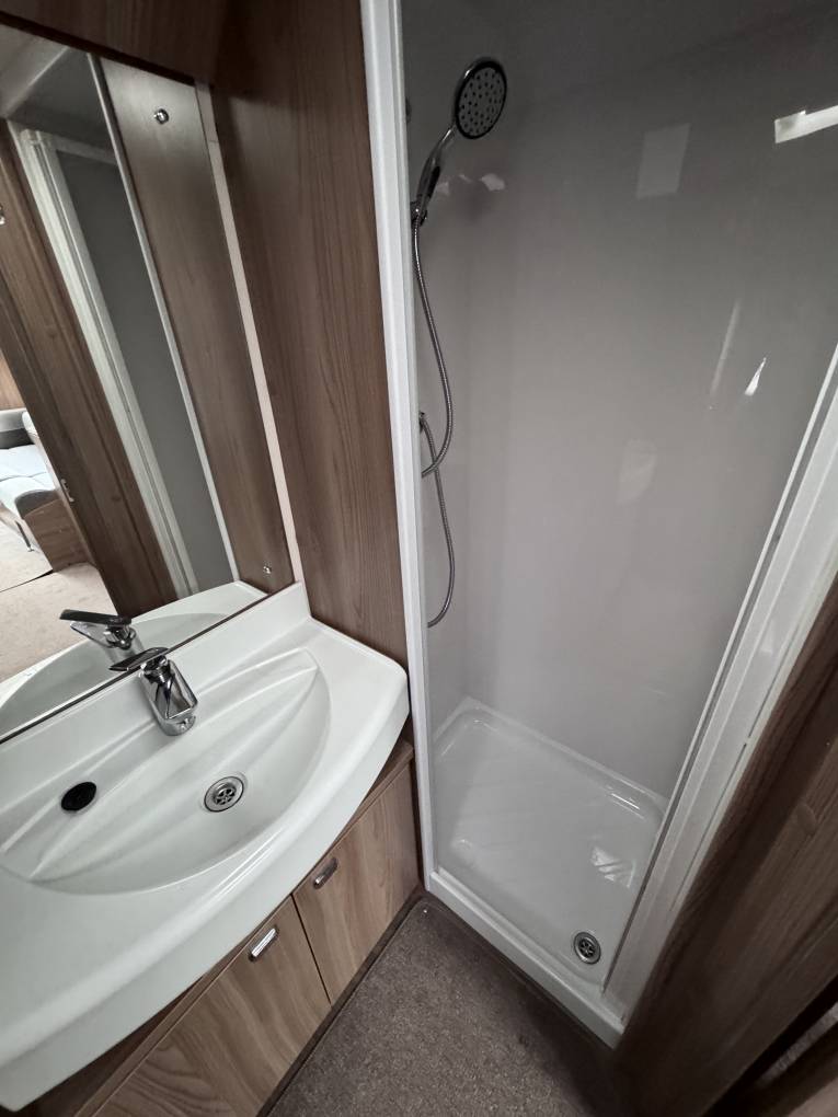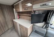 The cab area windows come with built in blinds for night time privacy and the lounge area has a TV point if you just fancy a relaxing evening in the van. The heating system is the well known whale blown air system powered by mains electric when on hook up or gas if wild camping. Similarly the fridge will work on mains electric, gas or when the engine is running it is powered from the vehicle 12v system so all food is kept at the right temperature when underway.