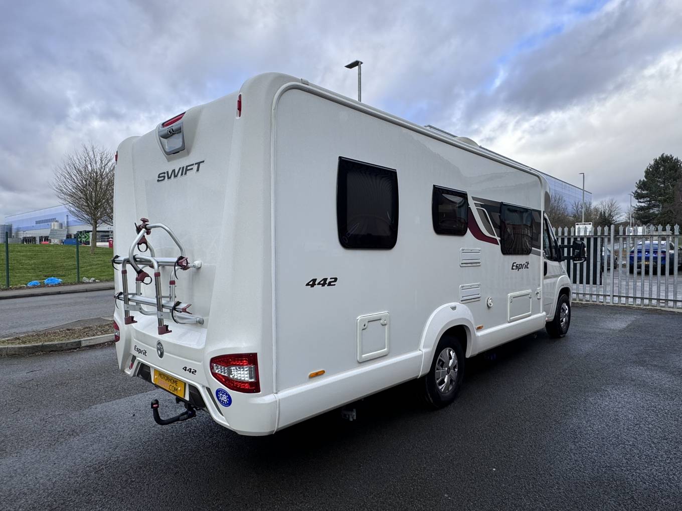 Motorhome Depot is proud to present this stunning Swift Esprit 442 for sale. A wonderful low mileage example of this 2 berth Motorhome by the well renowned manufacturer Swift. This vehicle has covered just 14000 miles in its 9 year history and this is reflected in its excellent condition. Comprised of 2 berths in a lounge that can be either converted to make a double bed or left to make 2 singles.