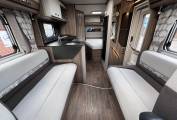 Behind the drivers position you will find 2 large sofas facing inwards. The 2 cab seats also swivel to make a large sociable area with seating for around 6 people. There is a multitude of storage options in this area both above and below the seats.