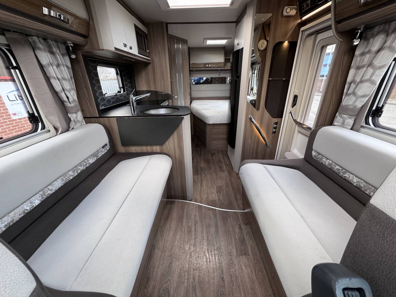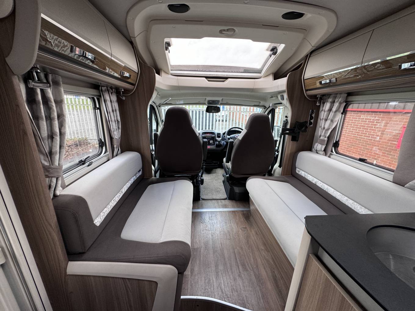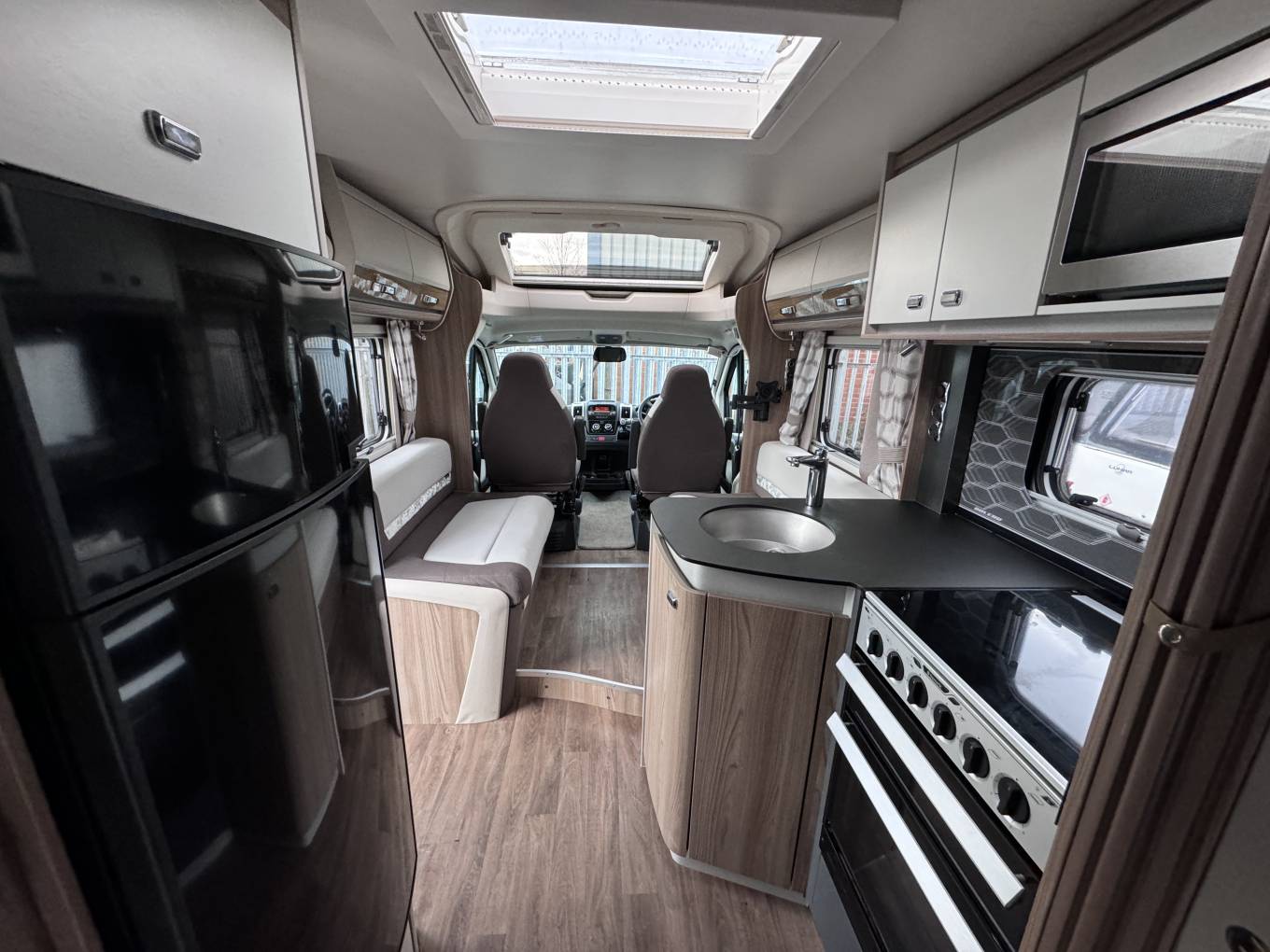 Based on the fantastic 2.3l 130bhp Fiat Ducato chassis with 6 speed manual gearbox, it is low mileage and comes with a comprehensive service history including the latest habitation check in November 2023. The cab and forward part of the hab area are black in line with the black edition version that this motorhome is.