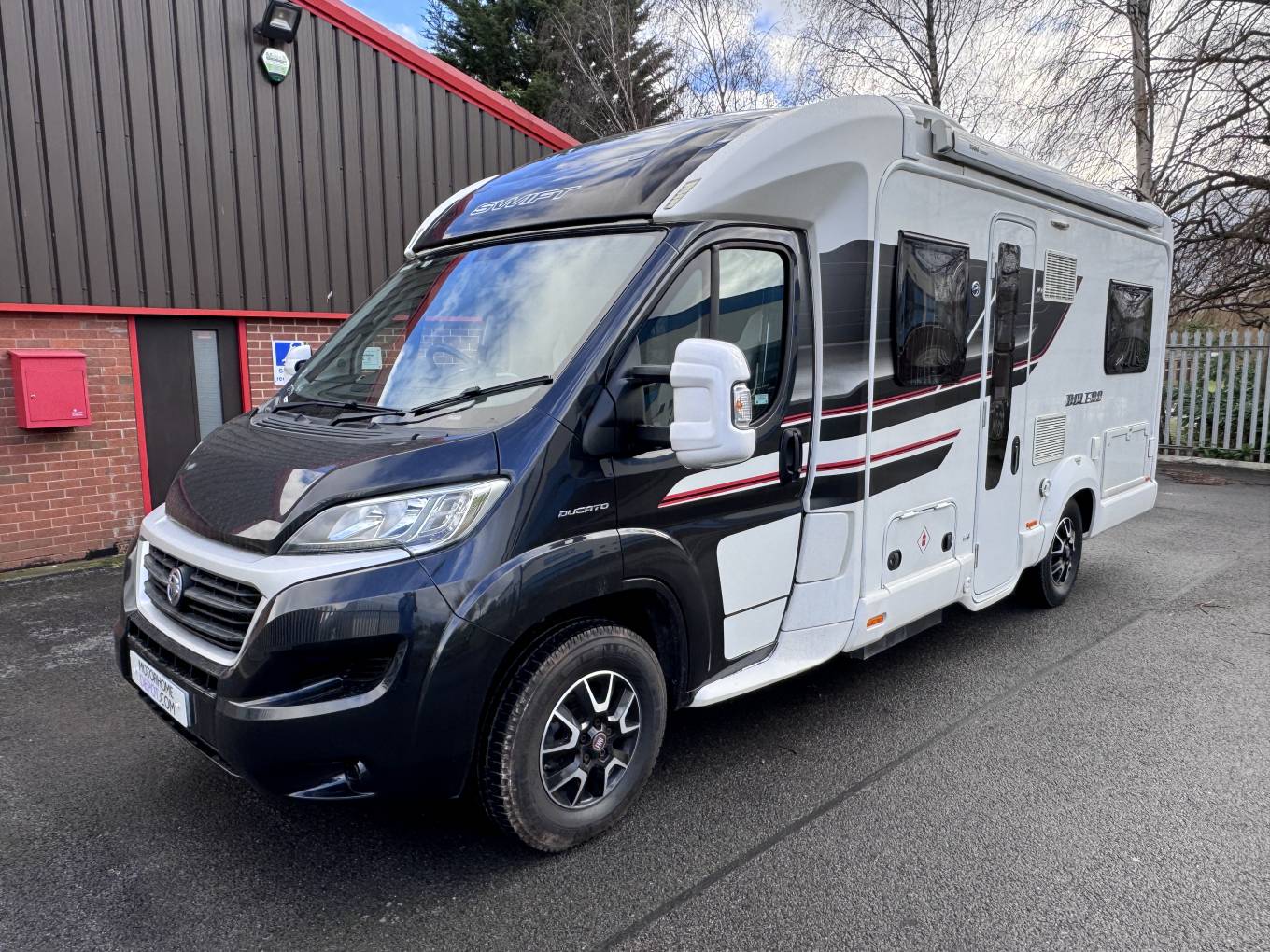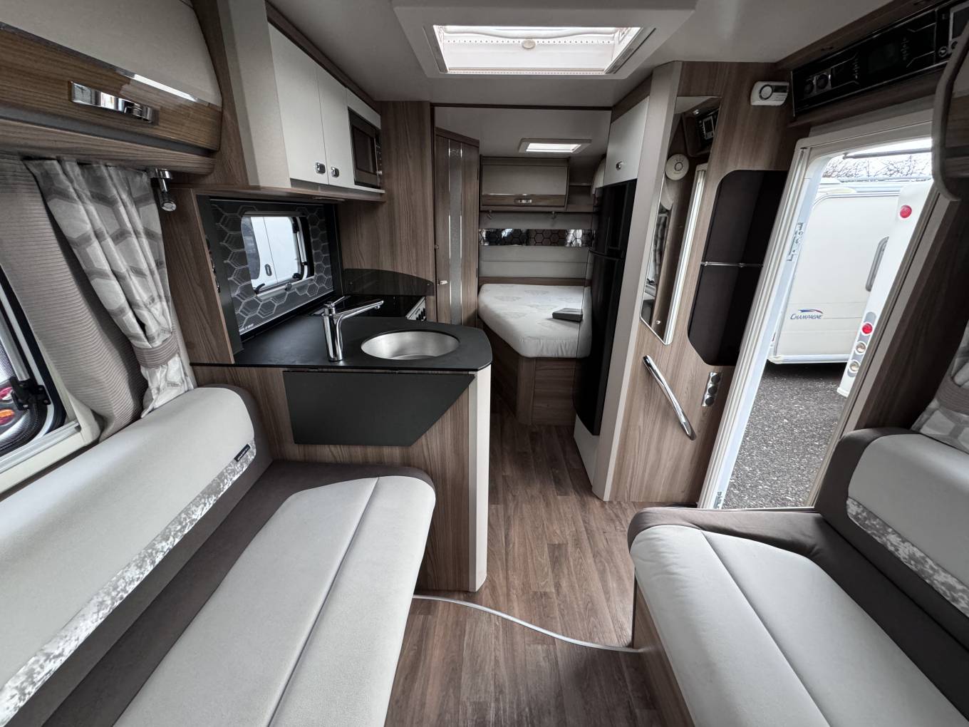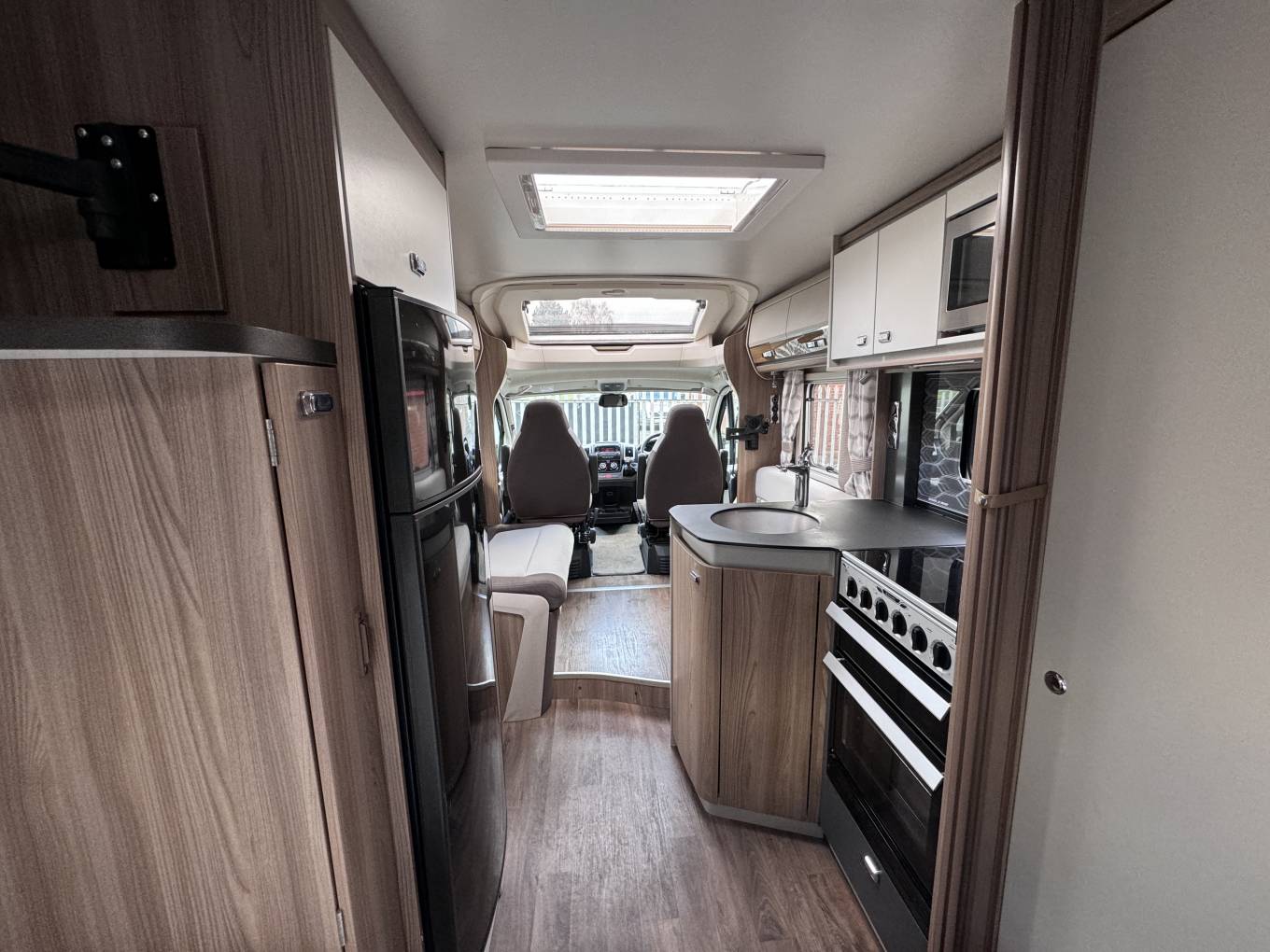 Based on the fantastic 2.3l 130bhp Fiat Ducato chassis with 6 speed manual gearbox, it is low mileage and comes with a comprehensive service history including the latest habitation check in November 2023. The cab and forward part of the hab area are black in line with the black edition version that this motorhome is.