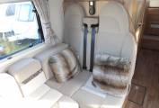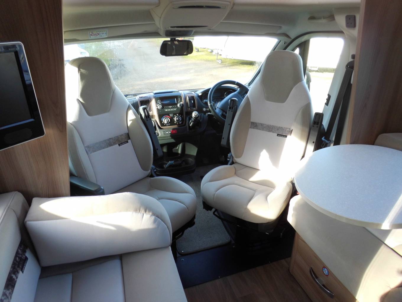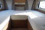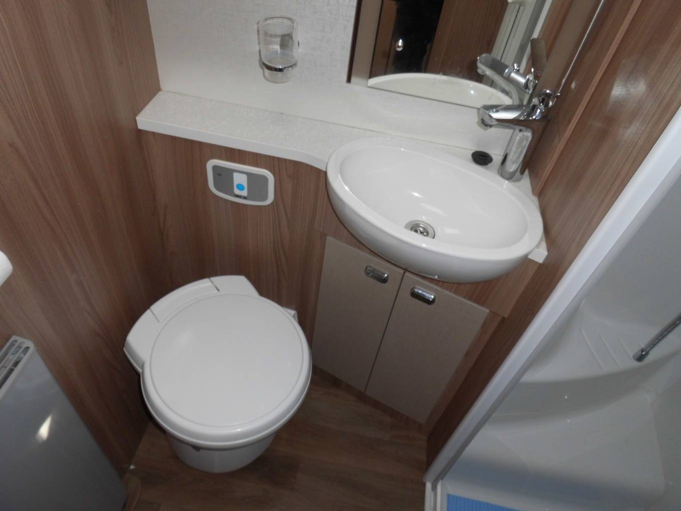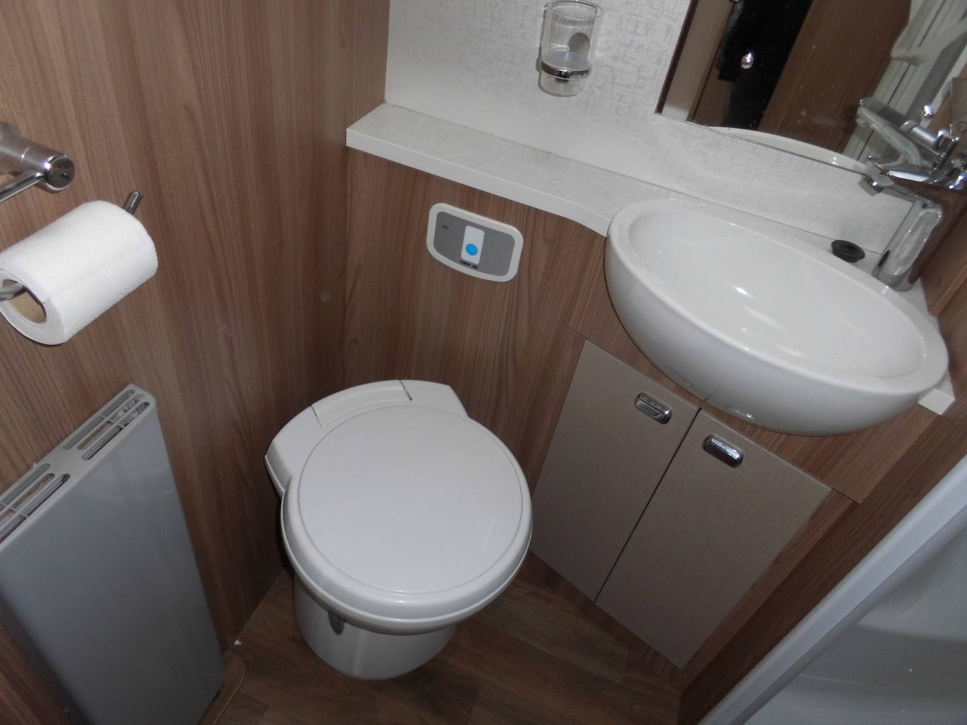 Generous 534kg payload capacity, .With its kitchen the 635 trounces much of the opposition. You get a Thetford cooker with dual-fuel hob plus separate oven and grill, as well as a fitted microwave directly above at a convenient height. The washroom has a swivel-bowl toilet, fixed basin and step-in, fully lined shower cubicle with moulded step area, There’s a second wardrobe and shelved storage at the foot of each bed. That still leaves plenty of space in the garage area below.