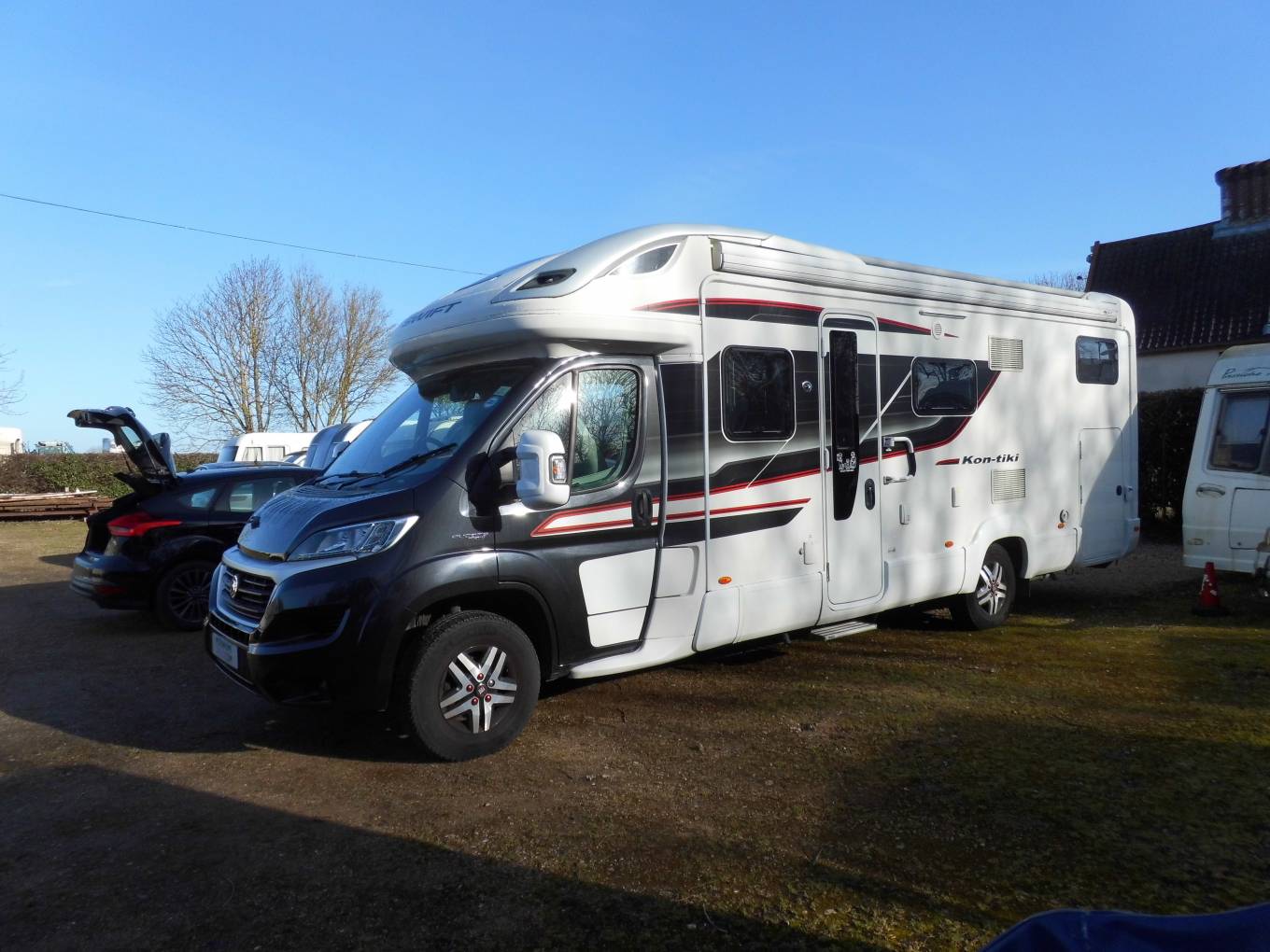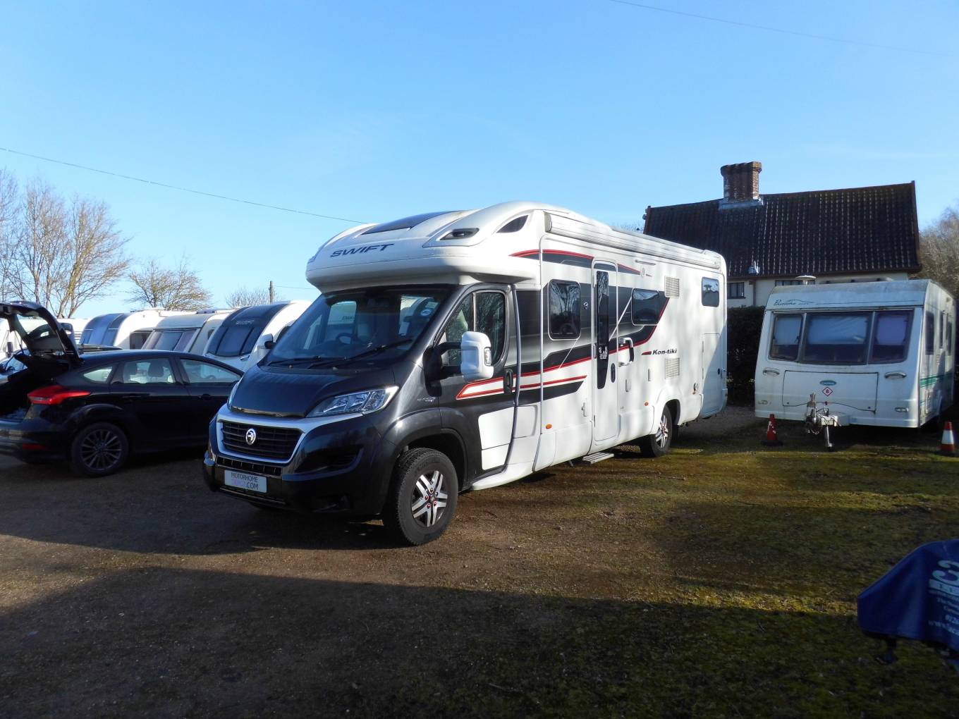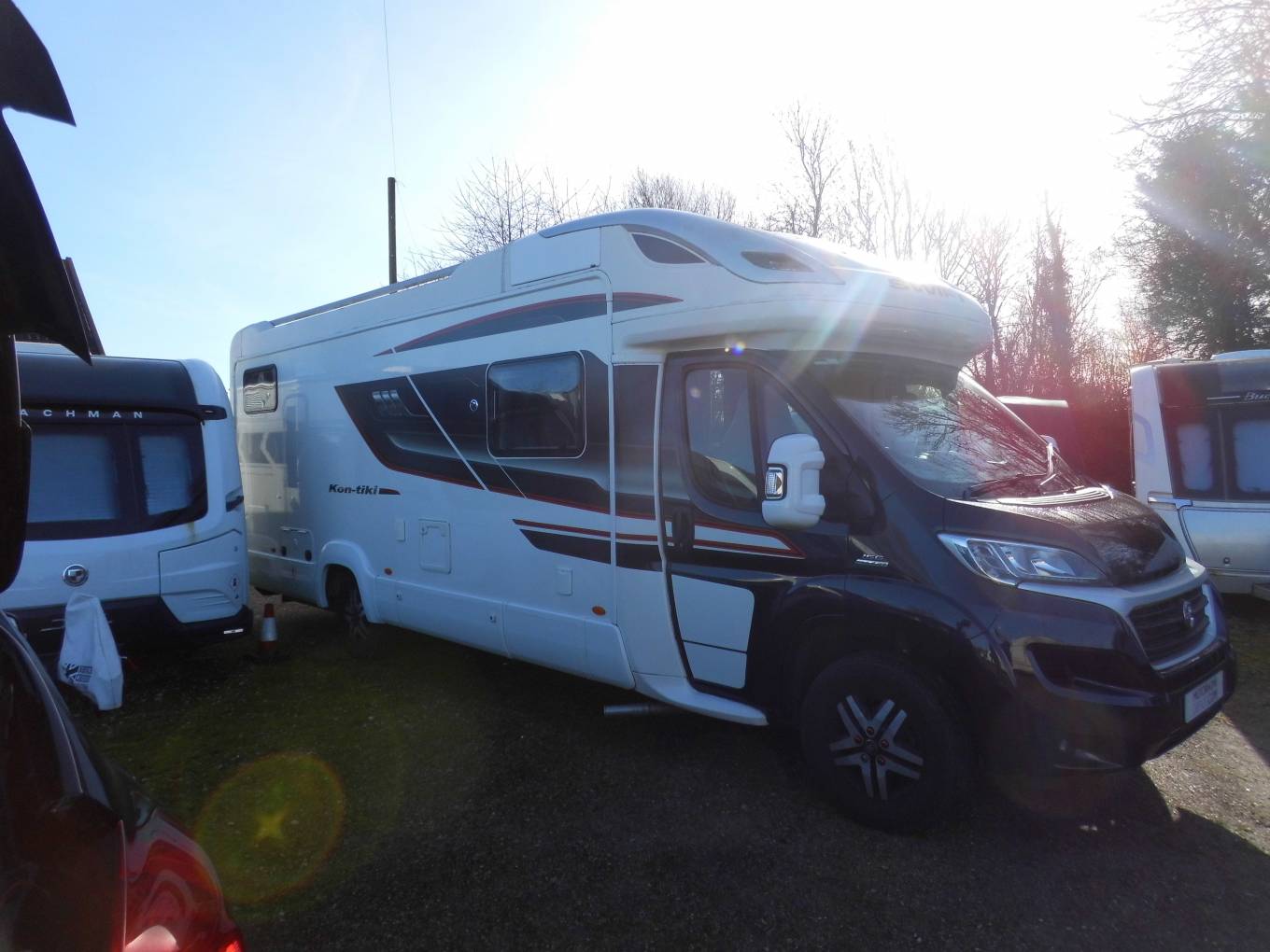 Swift Kontiki 635 Black edition 4 berth motorhome, presented with low mileage, full service and habitation history. Very popular layout, coupled with a large rear garage. 3 solar panels on board along with 2 leisure batteries, ideal for off grid camping. You get a 4,250kg Fiat Ducato/Al-Ko chassis with a double floor and Swift’s latest SMART bodywork construction. Plenty of light and space in this motorhome, the addition of a self levelling system is a real bonus making pitching up and easy process.