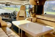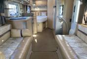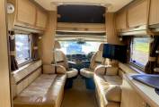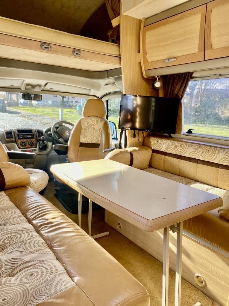 The interior of the E765 is part cream leather with walnut wood finishes and the layout is from stepping inside the Bessacarr with its