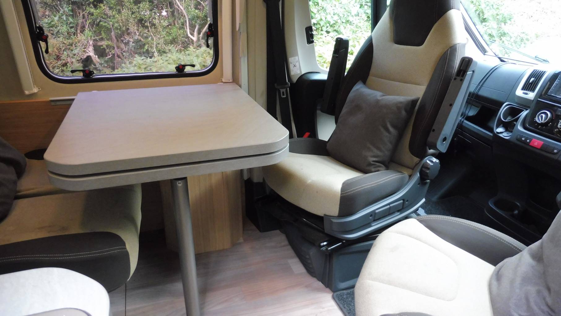 Arrive on site, swivel the captain chairs and relax. The half-dinette has an extending table for dining, games etc.