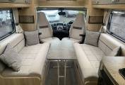 Chassis with 4 travel seats. It has a French Style fixed rear bed with Hypnos