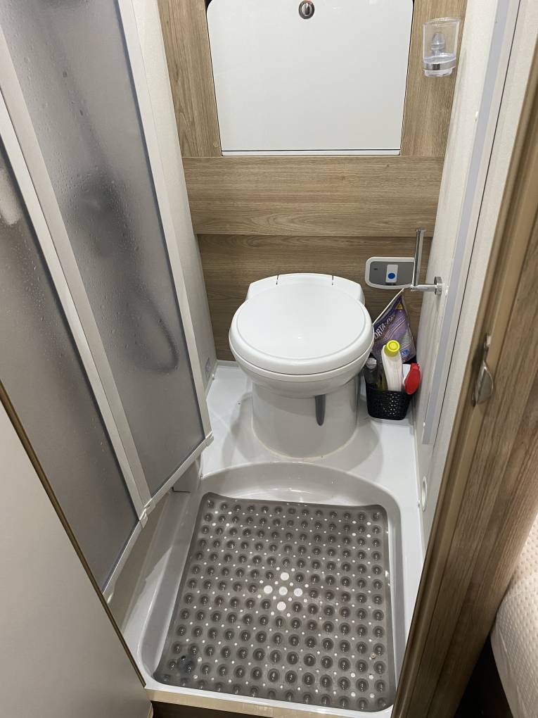pulled up by air sprung struts. The washroom is located in the rear offside