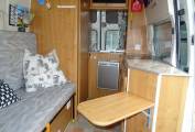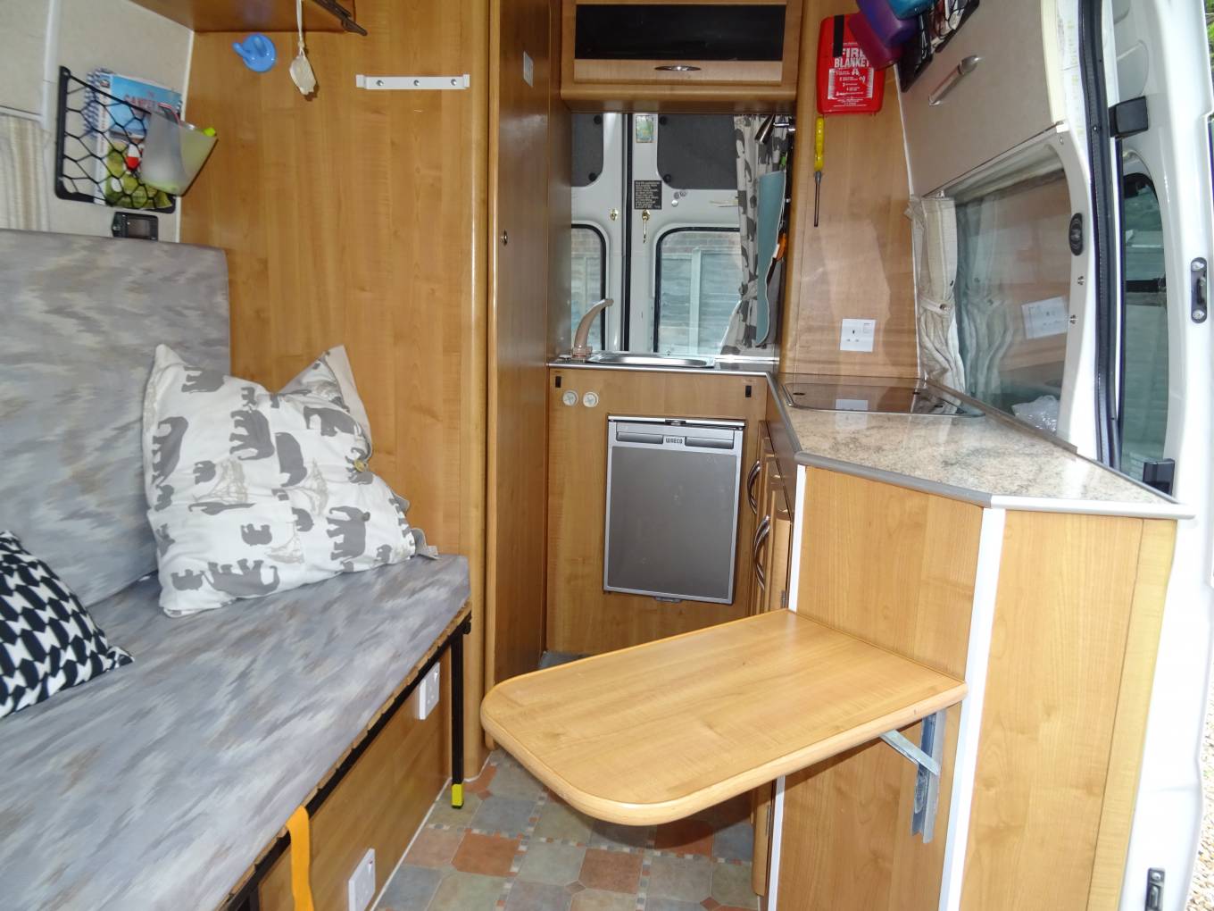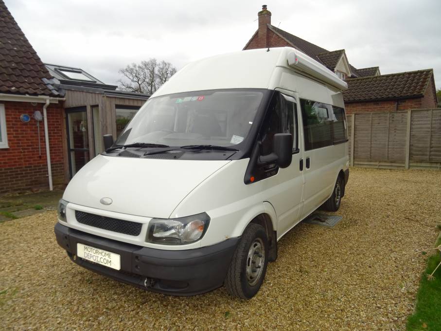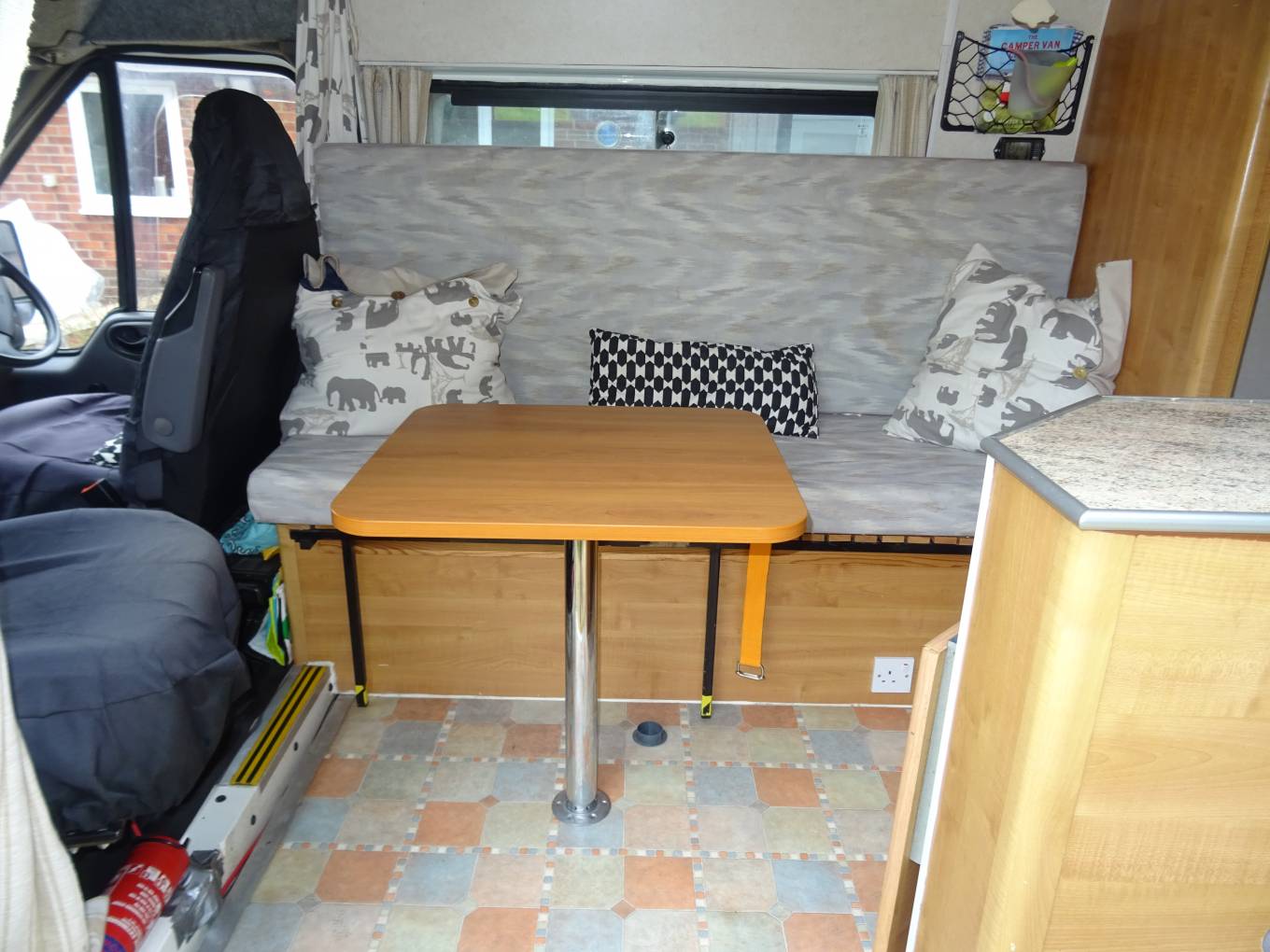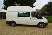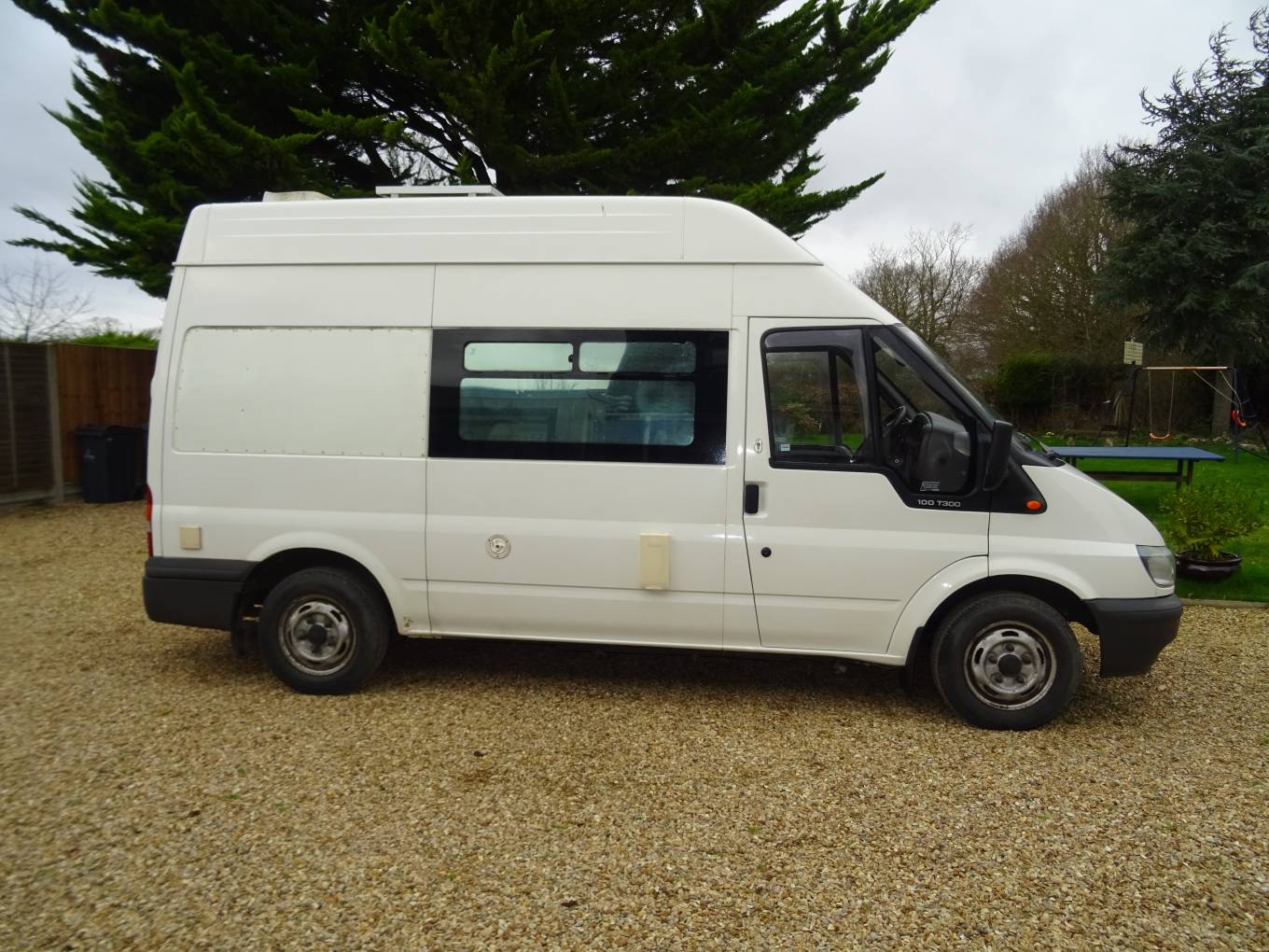This very nice Ford Transit conversion with everything you need with 2 berth 2003. This motor home has a large sliding door for easy access. As you enter the camper from the side there is a long seating / dining area which converts into a double bed. The seat itself is long making this ideal for a single day bed. To the left of the entrance is the cab area with one swivel seat. The dining area has a removable dining tables. To the rear is the kitchen area comprising of a 2 ring gas hob with glass lid, a sink, fridge with a small freezer compartment. There are both high and low level cupboards for storage. Moving to the back left there is a washroom, consisting of a toilet, foldaway sink unit. Other features solar panels, diesel heating, hot water, twin leisure batteries, radio, refillable gas. reversing camera, wind out canopy.
