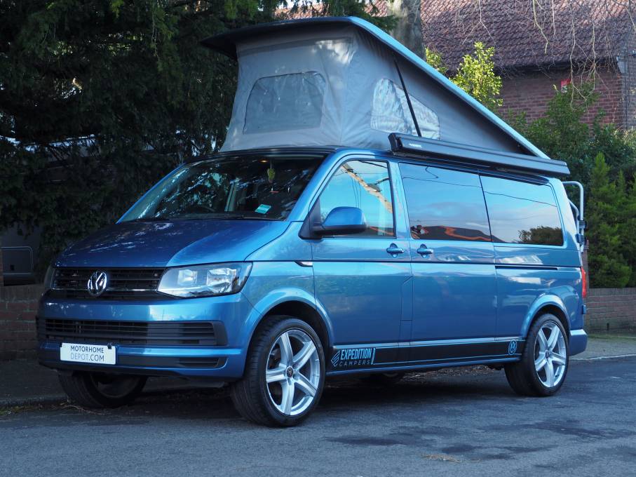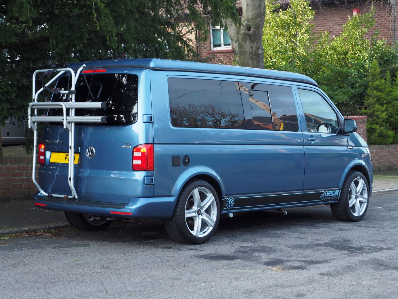 Up front, VWTrendline specification offers cab air conditioning, 5 speed gearbox, cruise control, media unit with Bluetooth, reversing sensors. Outside you will find styling details, bike rack for 2 bikes, solar panel on the roof, wind out sun canopy, input points for 230v electrics and water.