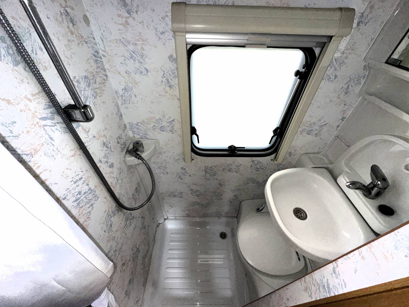 which offers a drop-down sink, Thetford cassette toilet and integrated shower.