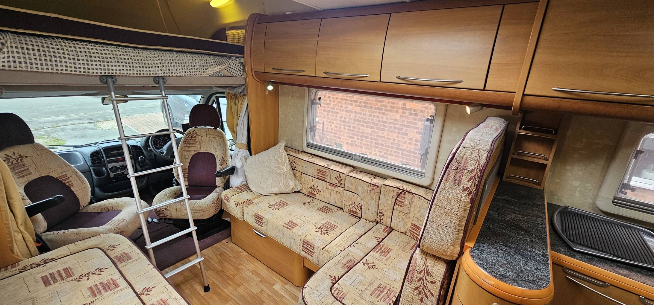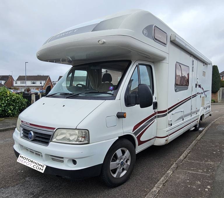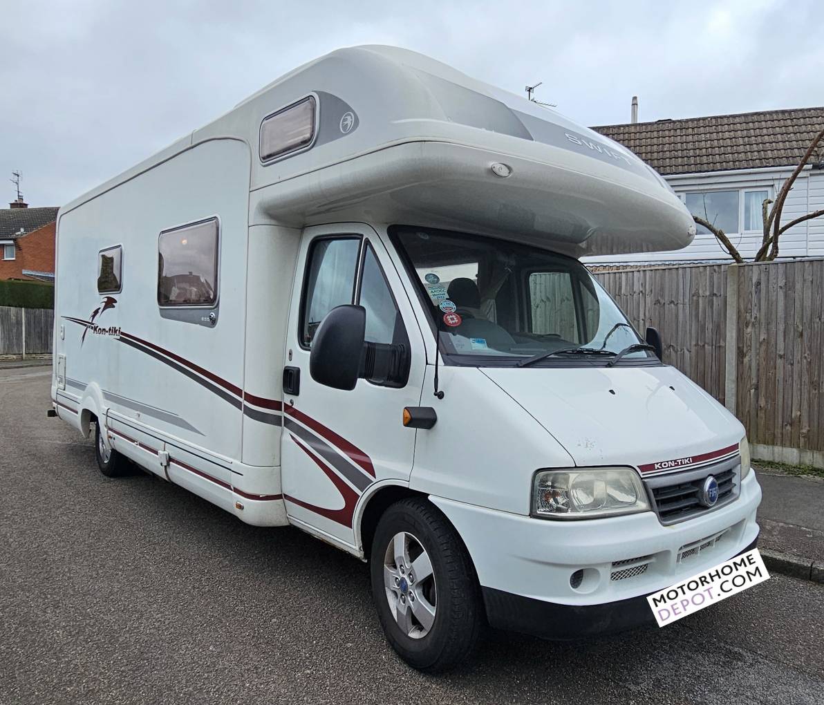 Motorhome Depot Ashfield present this 2004 Swift Kon-Tiki 655 4 berth with 4 full belts and full width rear washroom to the market for sale.