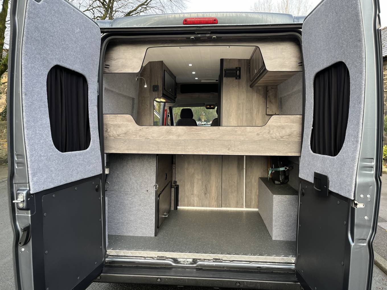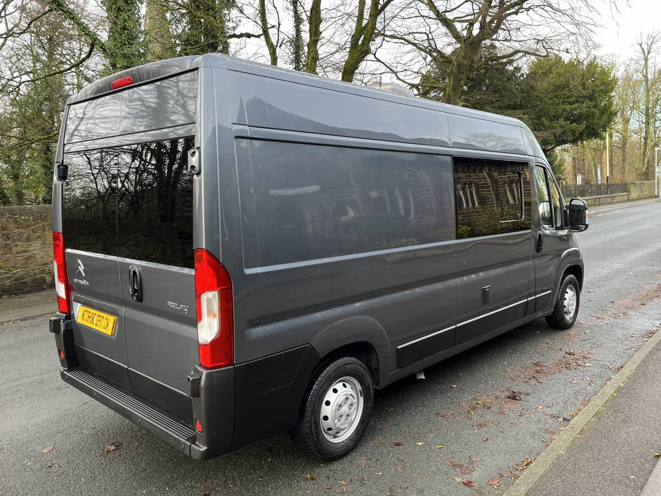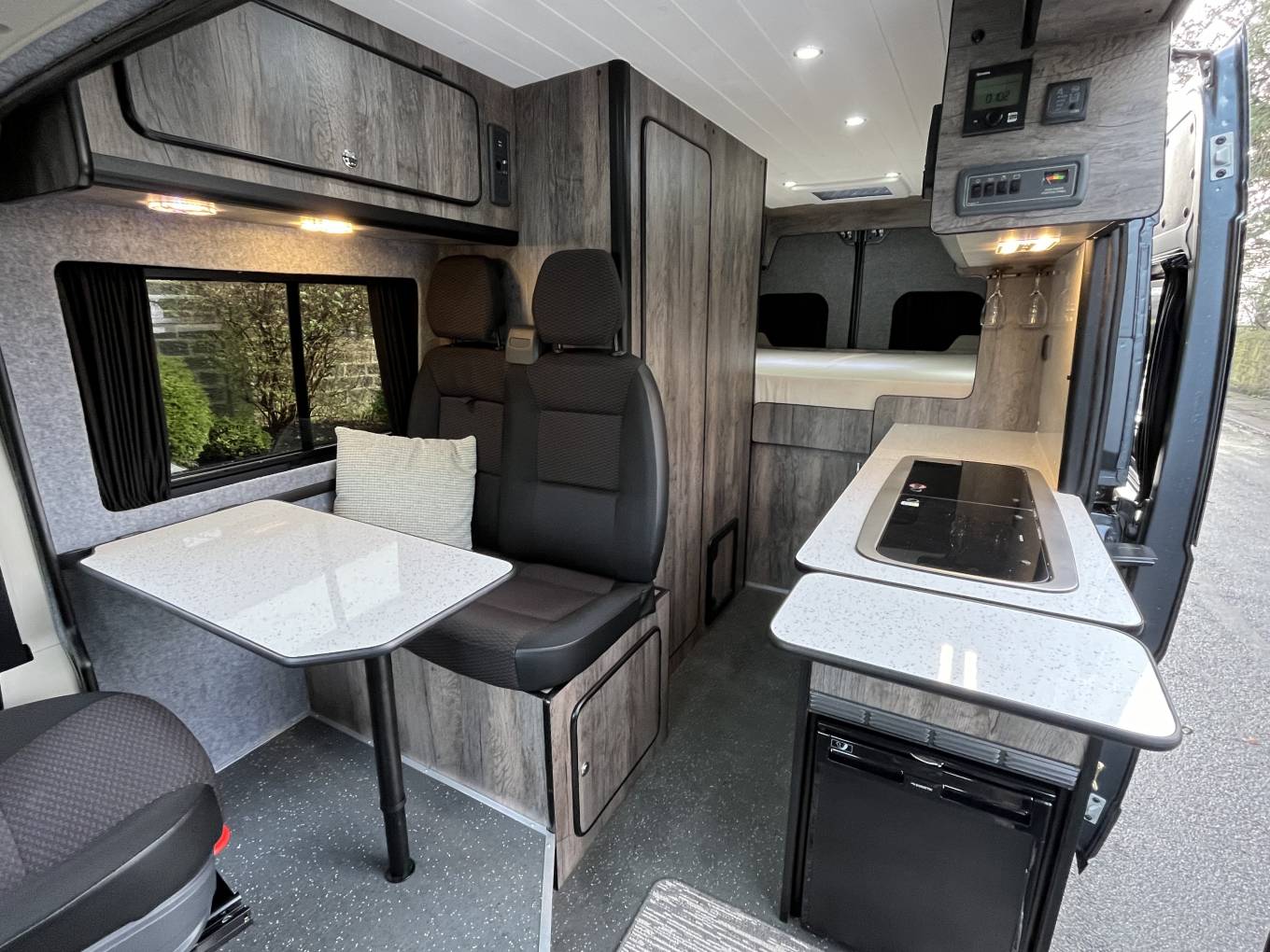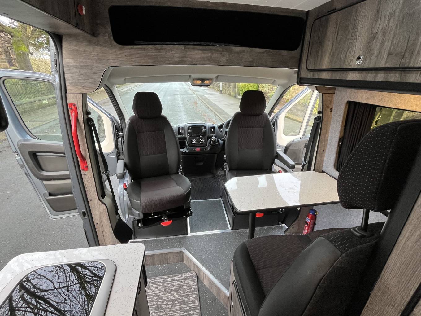 Citreon Relay Campervan, New Conversion with Fixed Rear Bed and Garage. This van was first registered in May 2022 with one owner, 5,604 miles on the clock and is in excellent condition throughout. At the rear of the van there is a Fixed Double Bed, under this is a large stoage area which is accessed by the rear doors. In the centre there is a well equipped kitchen and opposite this is the bathroom with toilet, washbason and shower. At the front is the dining area with 2 forward facing seats and 2 captains seats. This is a quality conversion it comes with Truma Blown Air Heating and Hot Water, On Board Fresh and Waste Water Tanks, Outside BBQ Point, Mains Hook Up, LED Lighting and Maxair Rooflight. It also comes with Cab Air Con, Cruise Control, DAB Radio, Parking Sensors, Sat Nav, TV Aerial and 2 sets of keys. An excellent example available for viewing by appointment in Preston. Call for more photos, videos and information.