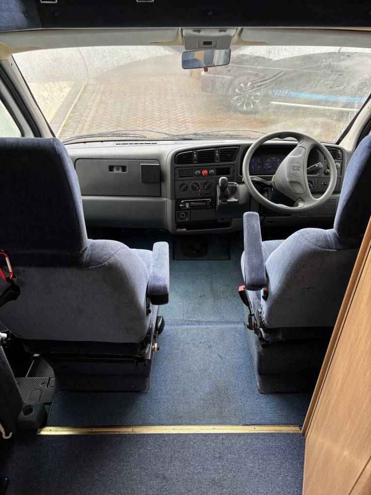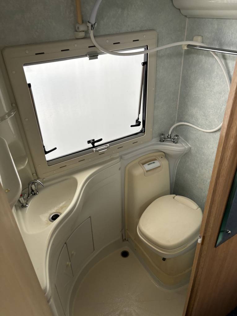 Opposite the entrance is a washroom complete with sink, toilet and shower, and next to this is another large storage cupboard. At the front there is an over-cab bed which comfortably sleeps 1 and possibly 2 if necessary, or could be used as extra storage space.