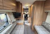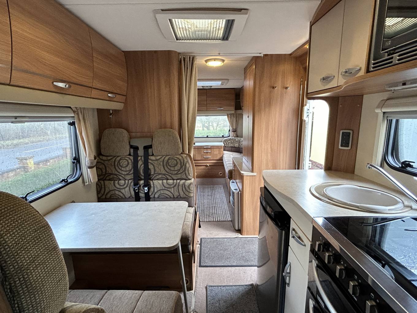 Designed with families in mind this Sundance will comfortably sleep 6 people in total and it is one of those rare beasts that actually comes with 6 travelling seat belts as well. Externally there is a tow bar, a wind out awning and an electric entrance step.