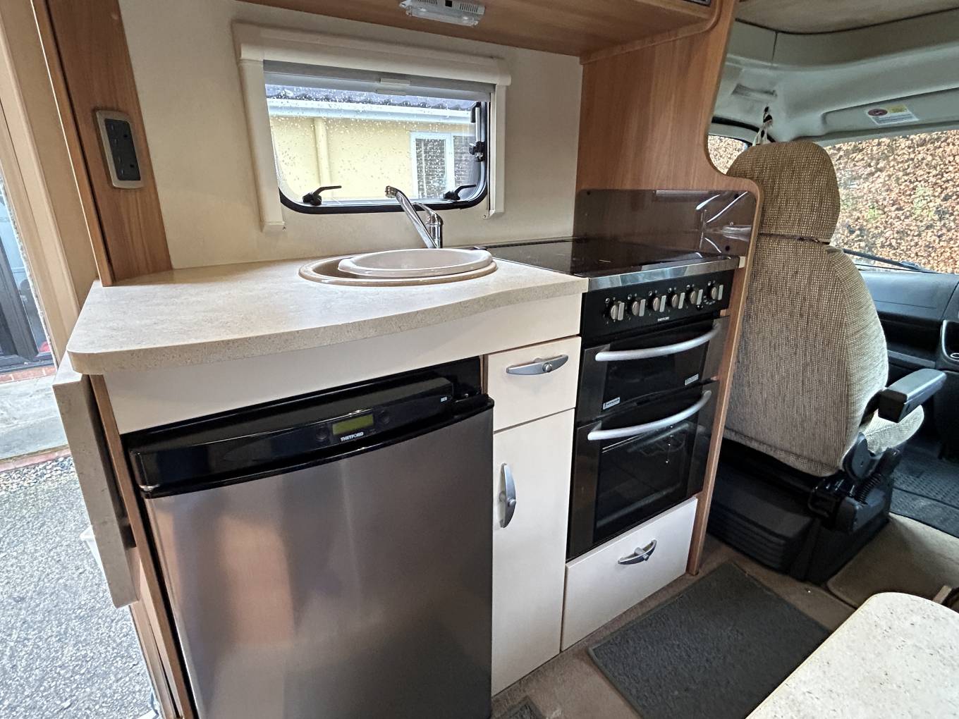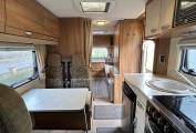 Cooking on the go will pose no problems in this Sundance as it has all the facilities any budding chef would want. It has a dual-fuel hob with an electric hotplate and 3 gas burners, an oven and grill, a microwave and a good size fridge with a freezer compartment. There is an extension leaf on the work top which increases your food preparation area and cupboards and drawers are plentiful to store your cookware and crockery.