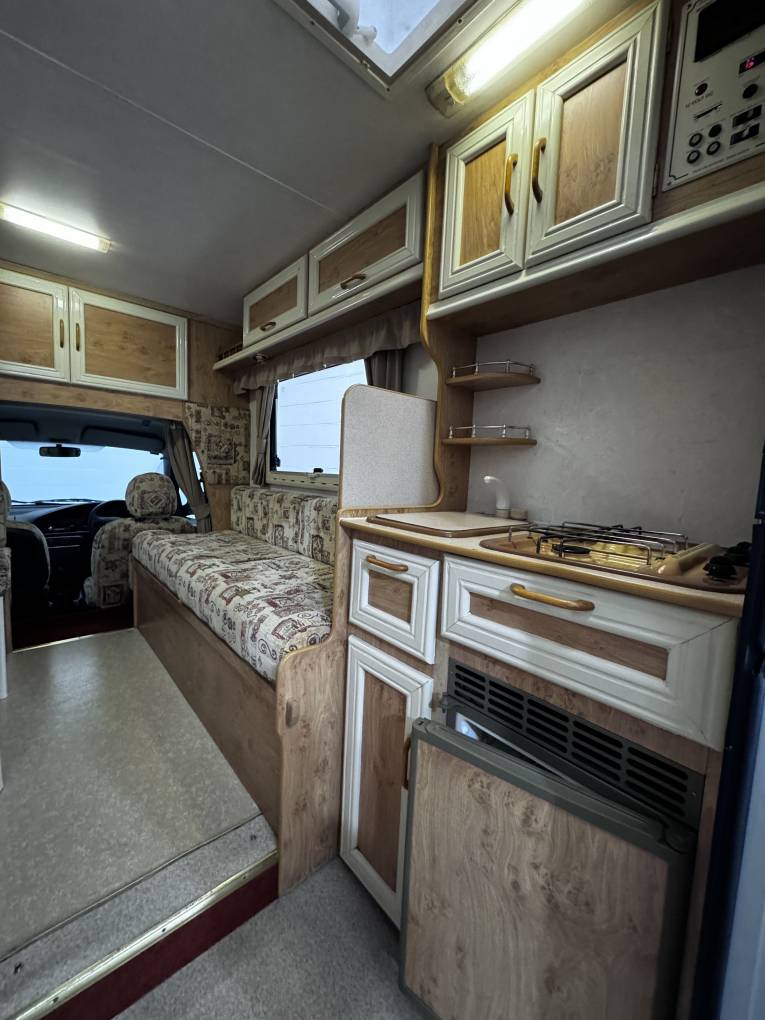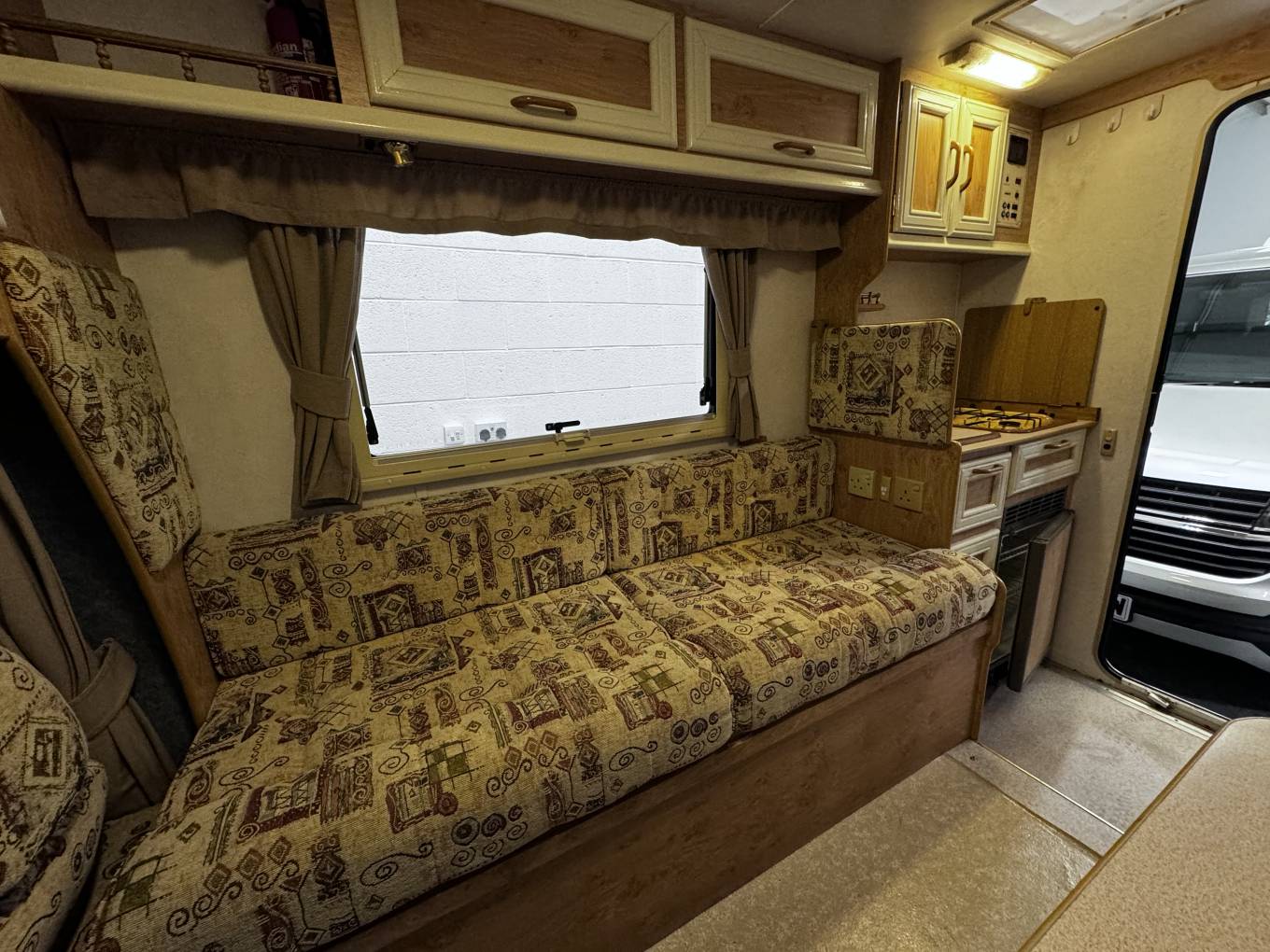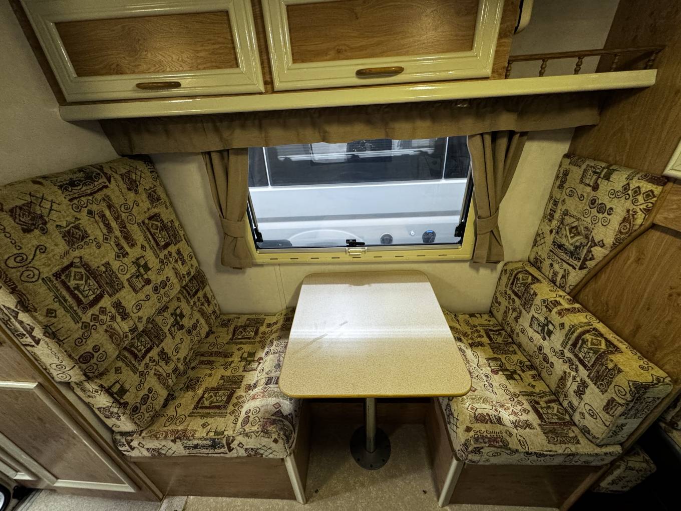 On the drivers side is a long inward facing settee and opposite a two person dinette.