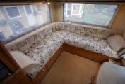 Wood effect vinyl flooring plus loose fit carpets for flexibility, Truma