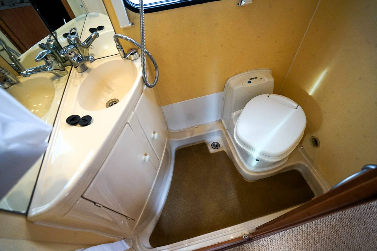 cupboard below, mirrors above, plus a Thetford cassette swivelling toilet with