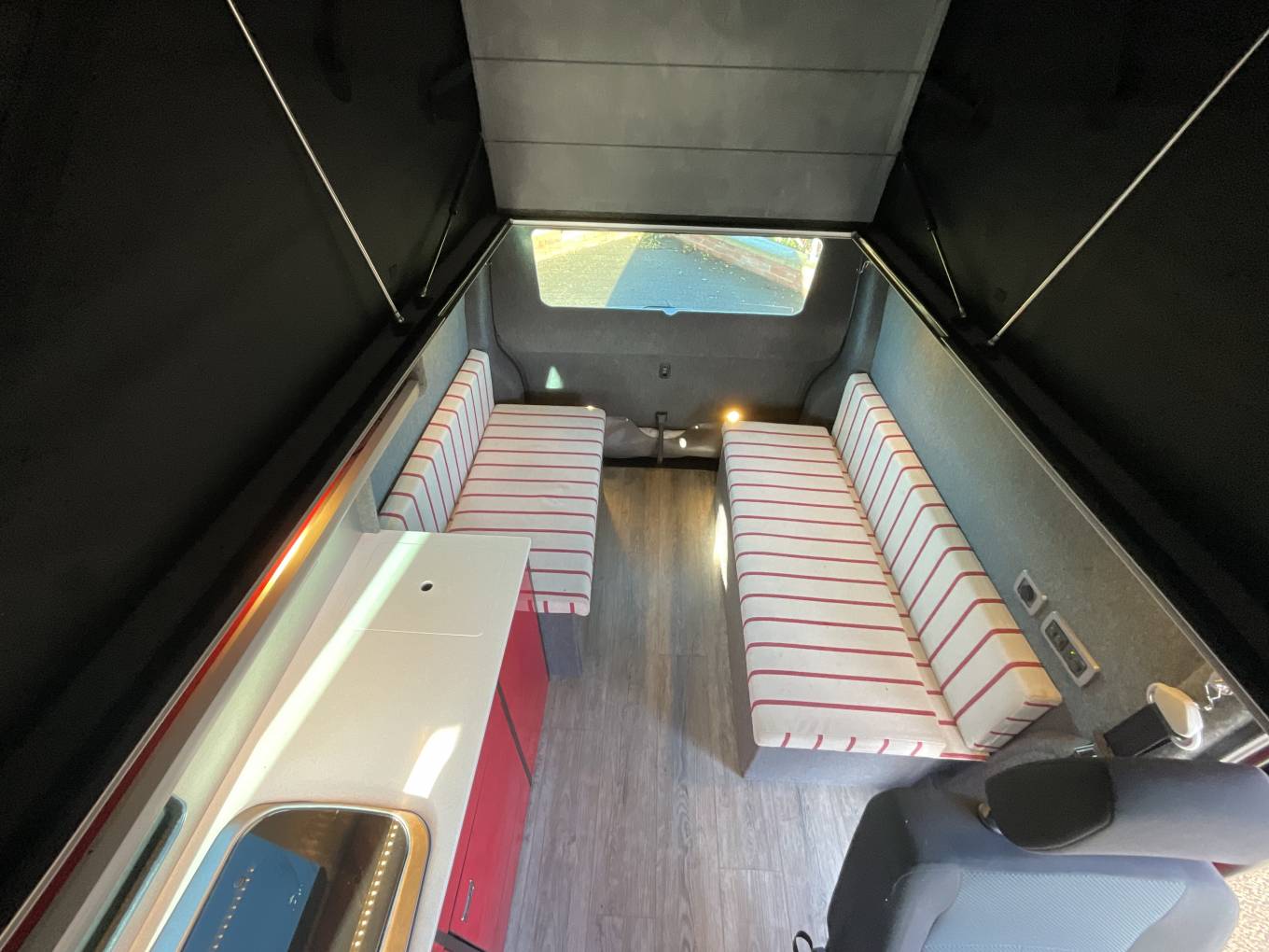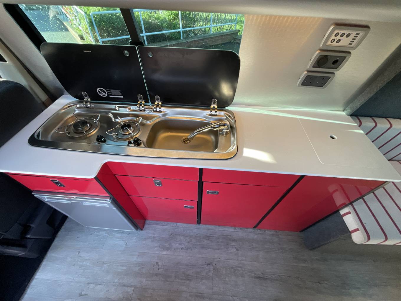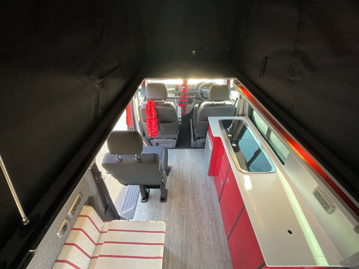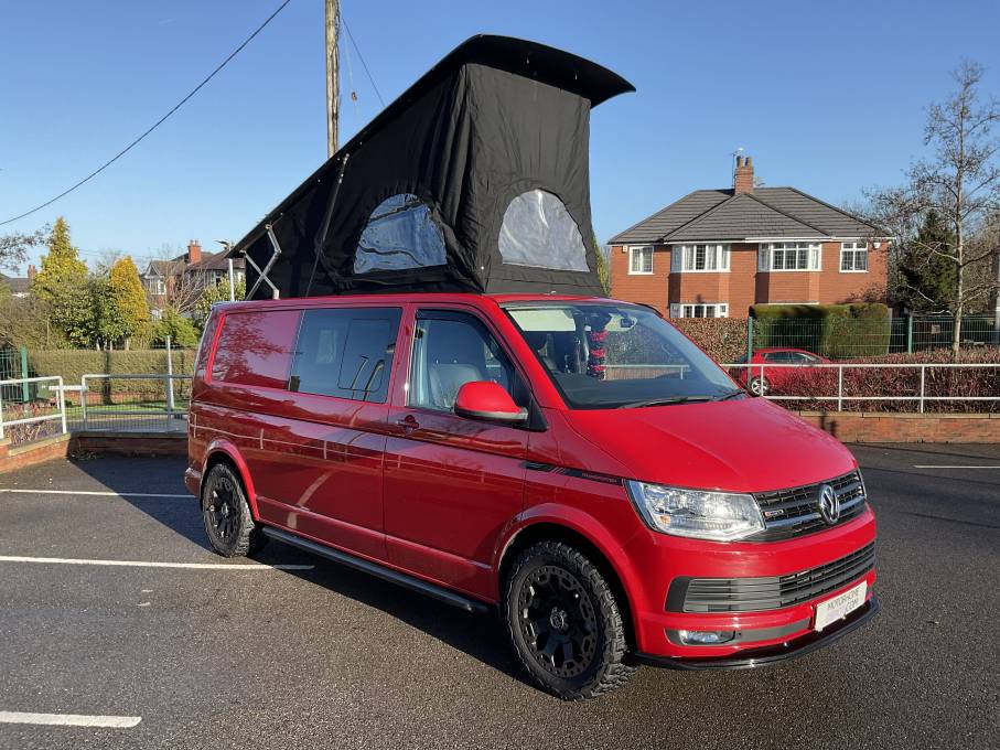 Motorhome Depot Stoke on Trent are delighted to have on offer a 2017 edition VW T32 Kombi Highline LWB Jaibow pop top camper conversion for sale. The LWB pop top camper is based on the popular Volkswagen chassis and has the powerful 2 litre 4 Motion TDI engine with the manual gearbox and boasts excellent service history. Starting at the rear, we have the Tailgate style rear door along with 2 side benches with ample underneath storage. The kitchen is comprised of a handwash basin, 2 burner gas hob and a 12v compressor fridge. The very generous space within the Stealth pop-top will provide ample space for 2 along with the 3 12v lights will make you feel cosy. The passengers seat will also swivel if required and the 3rd travelling seat can also be removed to give additional space if nor required. This really is in superb condition and comes with some lovely upgrades to make it a head turner. Please call our friendly sales team for further assistance.