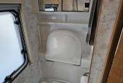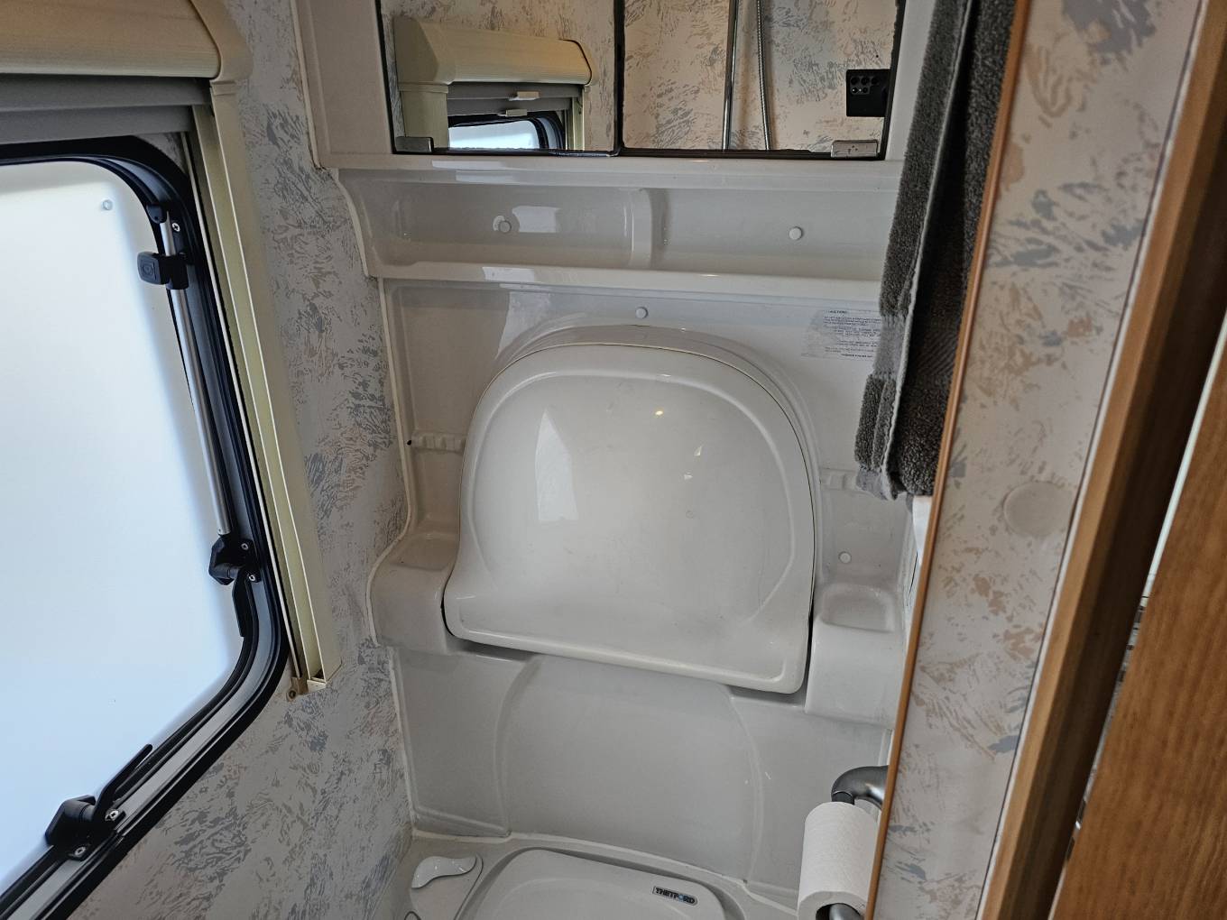 bathroom has a shower, cassette toilet and a fold down sink for convenience.