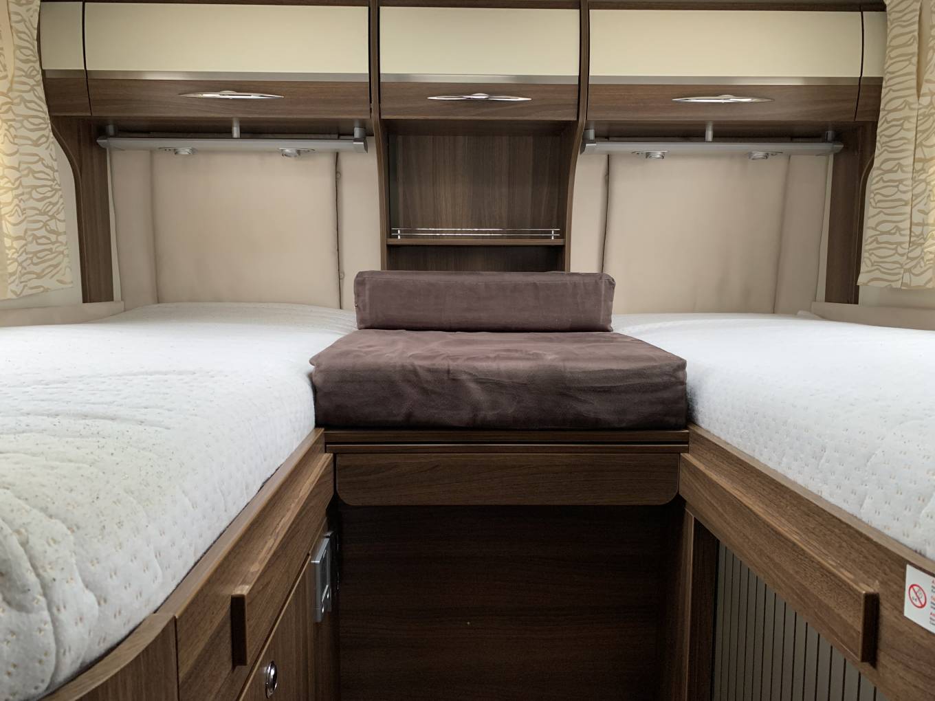 The other double an electrically operated dropdown above the cab, enabling full head height in the lounge.