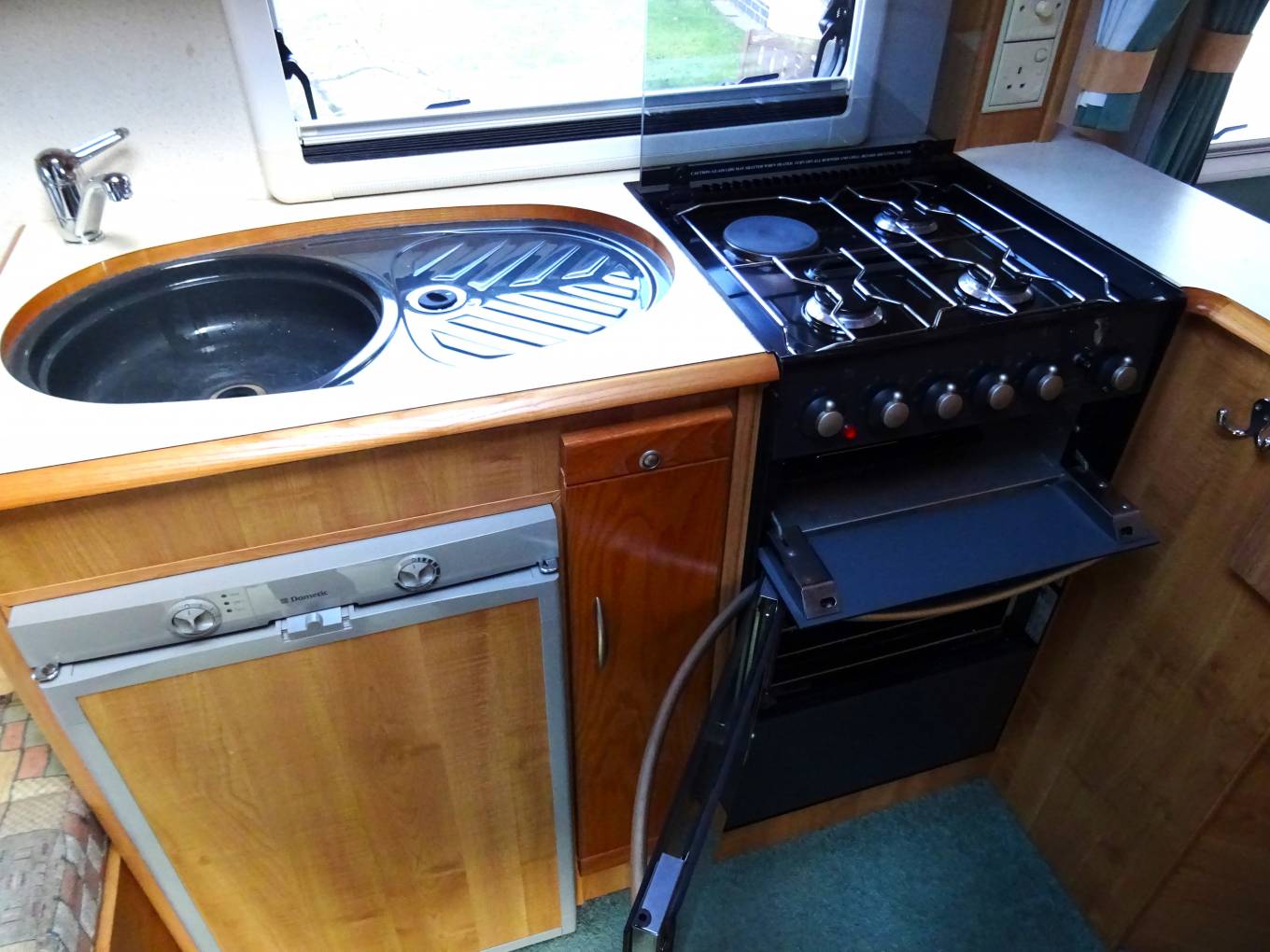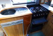 Outside there are two exterior lockers that give access to below the rear bed and the nearside bench seat, external BBQ point, external shower outlet and Fiamma wind-out awning.