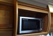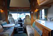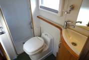As you step into the motorhome using the electric entrance step, you will find the lounge / dining area on the left with two bench seats, coffee table and passenger seat that swivels into the area. There is a large over-cab double bed that can be folded away to give you more head room in this area. In the centre of the motorhome is the well-equipped kitchen area complete with 3-burner gas hob with one electric plate, oven, grill, sink with mixer tap, 3-way fridge with freezer compartment, microwave and ample worktops. Then to the rear you will find a fixed French bed and adjacent is the large washroom with Thetford cassette toilet, hand basin with mixer tap, mirror and storage locker. It also has a large separate shower compartment with screen. Heating and hot water is provided by the Truma Ultra Store and Ultra Heat systems and can be run off gas or 240V.